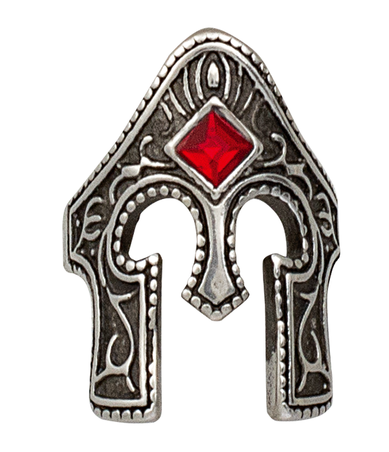 - Roman Helmet Ring Ø19 (16204-19) – stylizowany sygnet w formie hełmu rzymskiego galea z ozdobnym relefem. Wykonany z trwałego metalu w srebrnym wykończeniu z patyną. Dla pasjonatów historii i antycznej estetyki. Średnica: Ø19 mm.