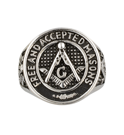 • Masons Ring Ø19 (09985-19) – wolnomularski sygnet z cyrklem, węgielnicą i literą „G”, otoczony inskrypcją „Free and Accepted Masons”. Patynowane wykończenie, rytualna symbolika i boczne detale – dla pasjonatów ezoteryki i historii masonerii.