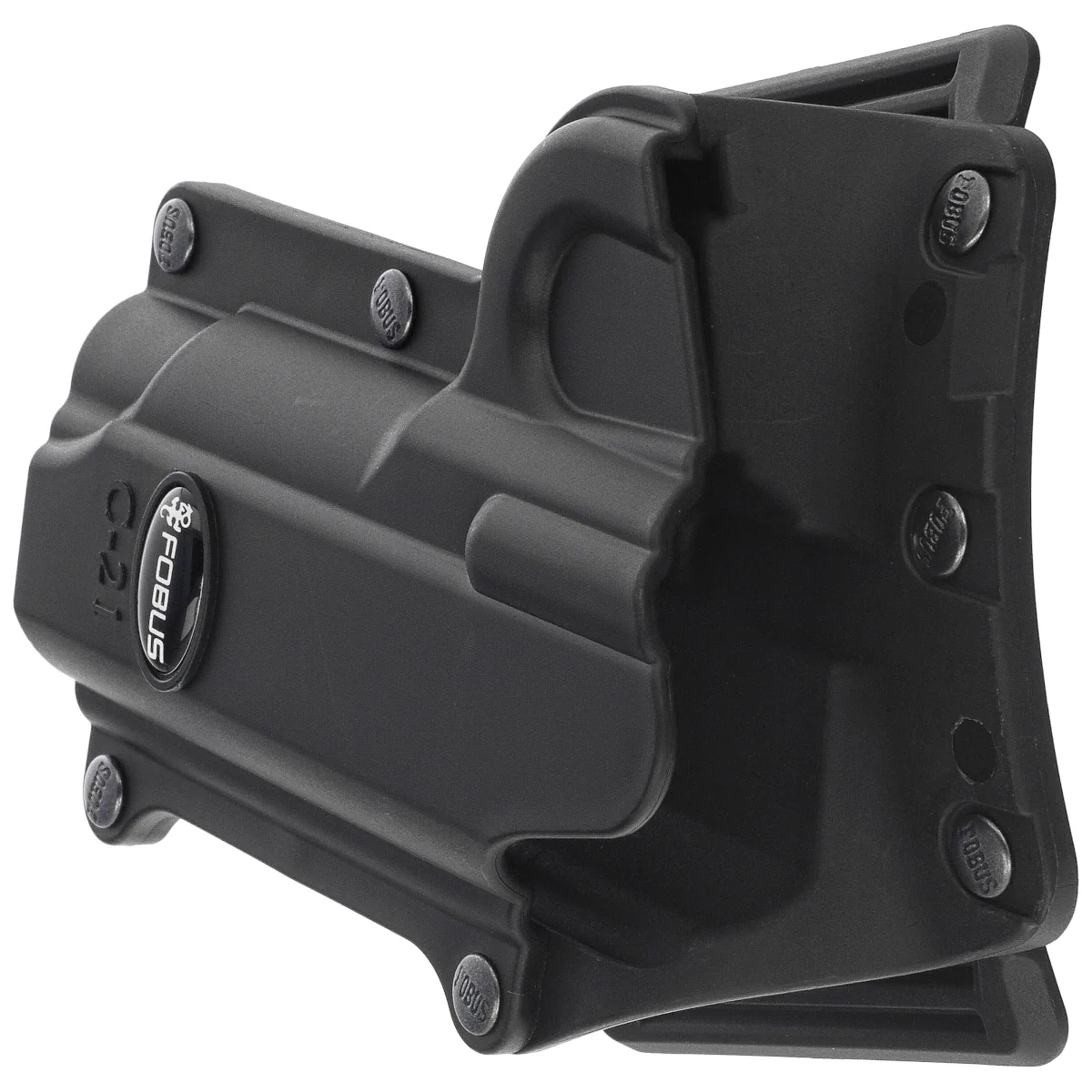 Kabura otwarta Fobus, typ Standard. Do pistoletów Colt: .45 Gov/1911 (bez szyny montażowej). Browning: Hi-Power Mark III 4 & 5mm. FN: High Power, HN Forty-Nine. Kahr: P9, T9, K9, TP9, T40, K40, MK40. Kimber: 1911 Style, 4&5 inch (bez szyny montażowej). Sasilmaz: Klinic 2000 Light. Smith & Wesson: 945. RX18 Polymer wykonana metodą wtryskową z odpornego na zarysowania, udar oraz ekstremalne temperatury tworzywa sztucznego o dużej gęstości.