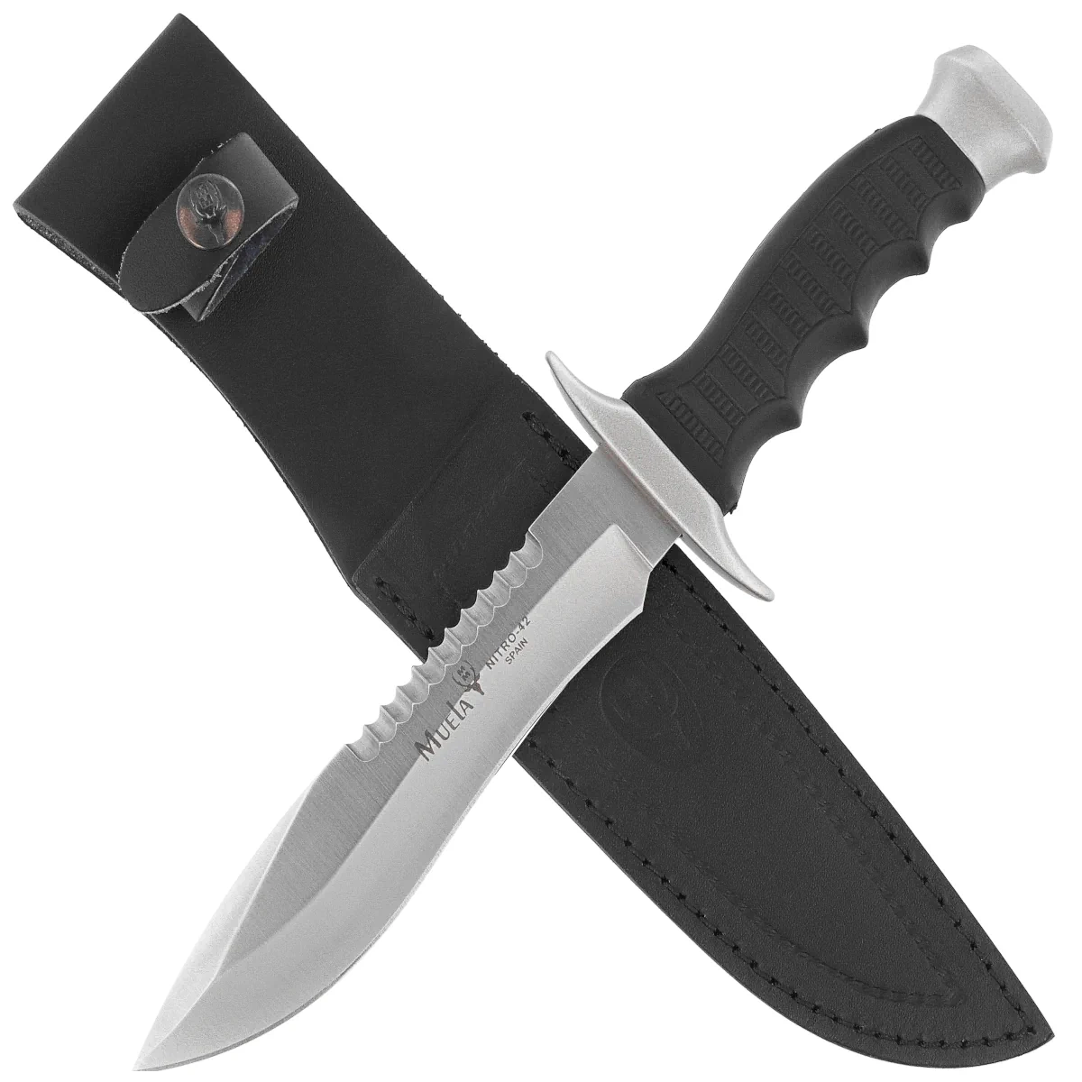 - Muela 85-162 pełnowymiarowy nóż ze stałym ostrzem o profilu Bowie. Wykonany ze stali nierdzewnej Nitro-42 pokrytej ochronnym czarnym wykończeniem z wytrzymałą rękojeścią wykonaną z gumy i zamaku. Zaprojektowany do zastosowań terenowych i taktycznych.