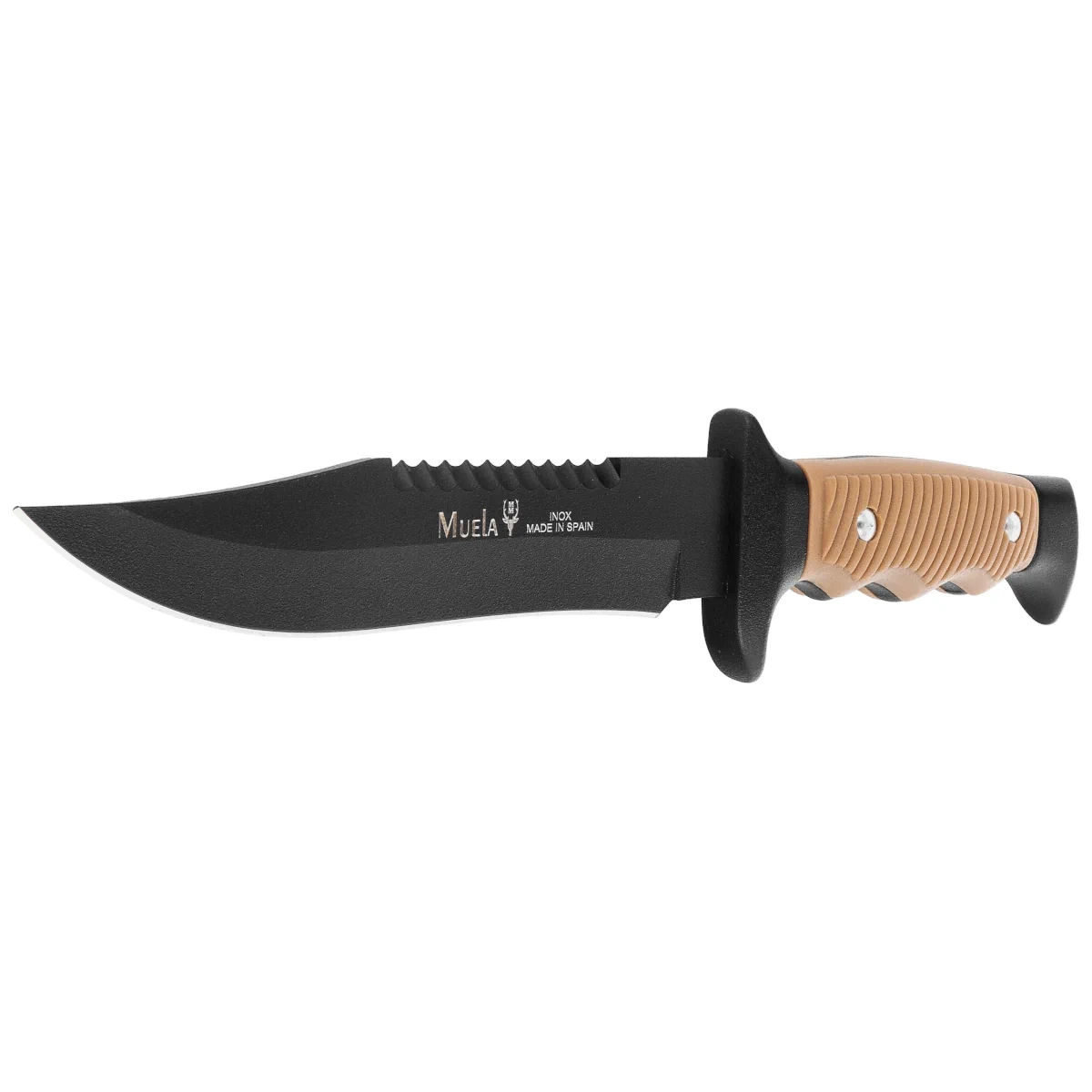 - Muela 5161-D pełnowymiarowy nóż ze stałym ostrzem o profilu Bowie. Wykonany ze stali nierdzewnej Nitro-42 i pokryty ochronnym czarnym wykończeniem, posiada wytrzymałą rękojeść wykonaną z ABS i zamaku. Zaprojektowany do zastosowań terenowych i taktycznych.