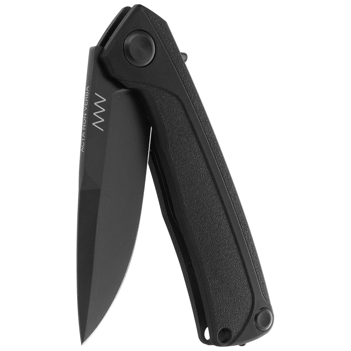 Z100 BB Black GRN, Black DLC od czeskiej marki Acta Non Verba Knives to kompaktowy i nowoczesny nóż składany klasy EDC, zaprojektowany z naciskiem na ergonomię, szybkość działania i taktyczną estetykę. Wersja BB (Ball Bearings) oferuje połączenie płynnego mechanizmu otwierania z wygodną i bezpieczną blokadą. Konstrukcja oparta na sprawdzonych materiałach – takich jak stal Sleipner, powłoka DLC i wzmocniony GRN – sprawia, że folder ten sprawdzi się zarówno w warunkach miejskich, jak i terenowych. Wyjątkowo lekka rękojeść z tworzywa wzmocnionego włóknem szklanym jest odporna na uderzenia, a jej subtelna faktura wspomaga chwytność. Dzięki wykorzystaniu łożysk kulkowych i flippera z punktem Lumi-Dot, otwieranie noża jest błyskawiczne i możliwe nawet w słabym oświetleniu. Całość dopełnia ergonomiczna forma oraz nowoczesna geometria ostrza, które przekładają się na pełną gotowość do codziennych zadań. Z100 BB to model dla użytkowników ceniących niezawodność, niską wagę i taktyczny wygląd – bez kompromisów w zakresie komfortu i funkcjonalności.