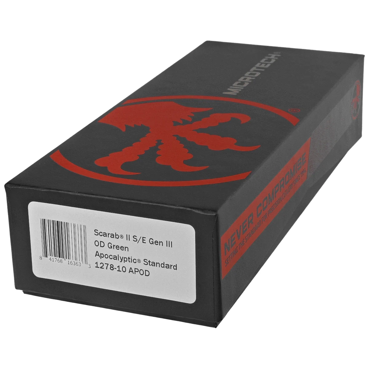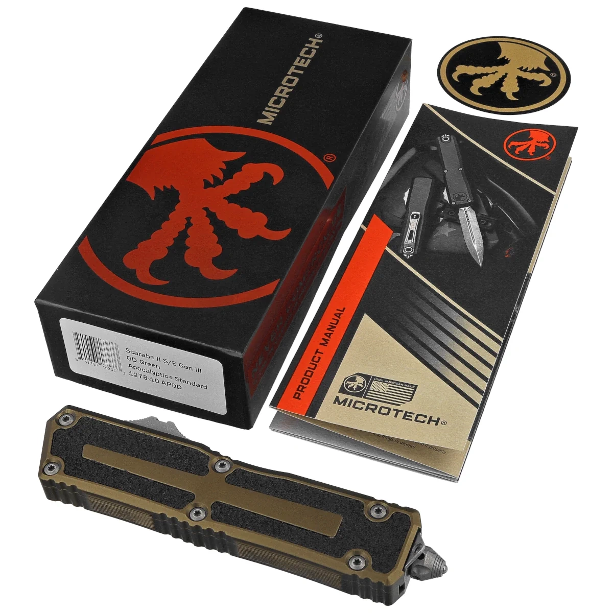 Scarab II Gen III S/E  OD Green Aluminium/3M, Apocalyptic to szczyt doskonałości w dziedzinie automatycznych noży taktycznych, czerpiący inspirację z oryginalnego projektu Microtech Ultratech. Zbudowany, aby wytrzymać najtrudniejsze warunki, nowy Scarab II jest najlepszym wyborem do intensywnego użytkowania. Zachowując cechy stylistyczne swojego poprzednika, wyznacza nowy standard dla technologii OTF (Out The Front).