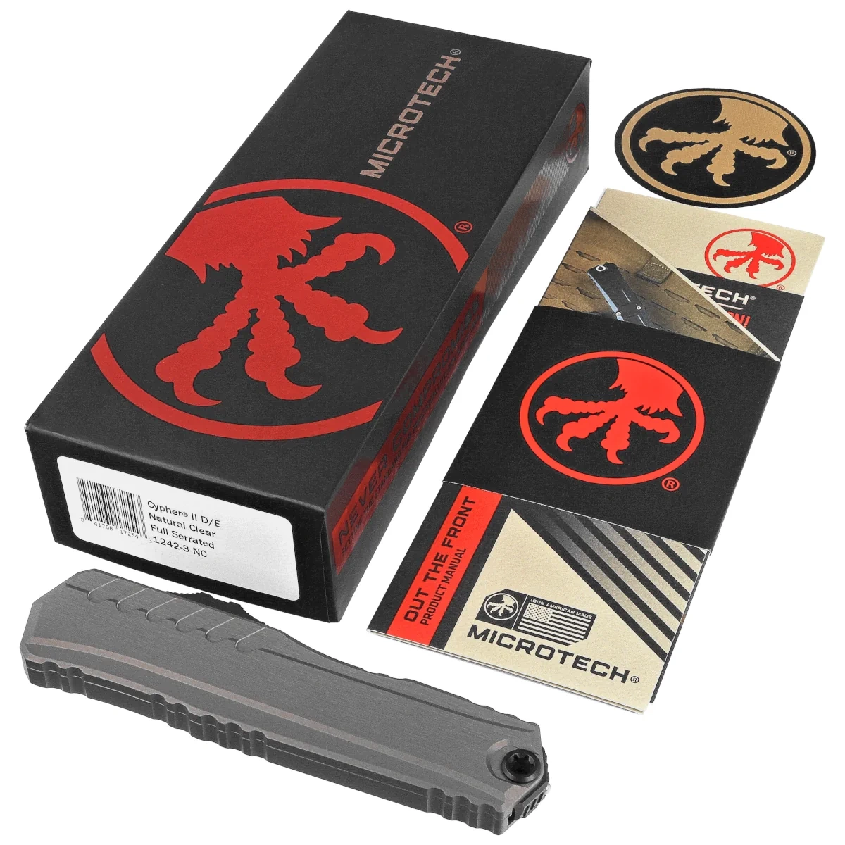 Nóż automatyczny OTF Microtech Cypher II D/E Natural Clear Aluminium, Black M390MK F/S by Deryk Munroe and Tony Marfione (1242-3NC)
