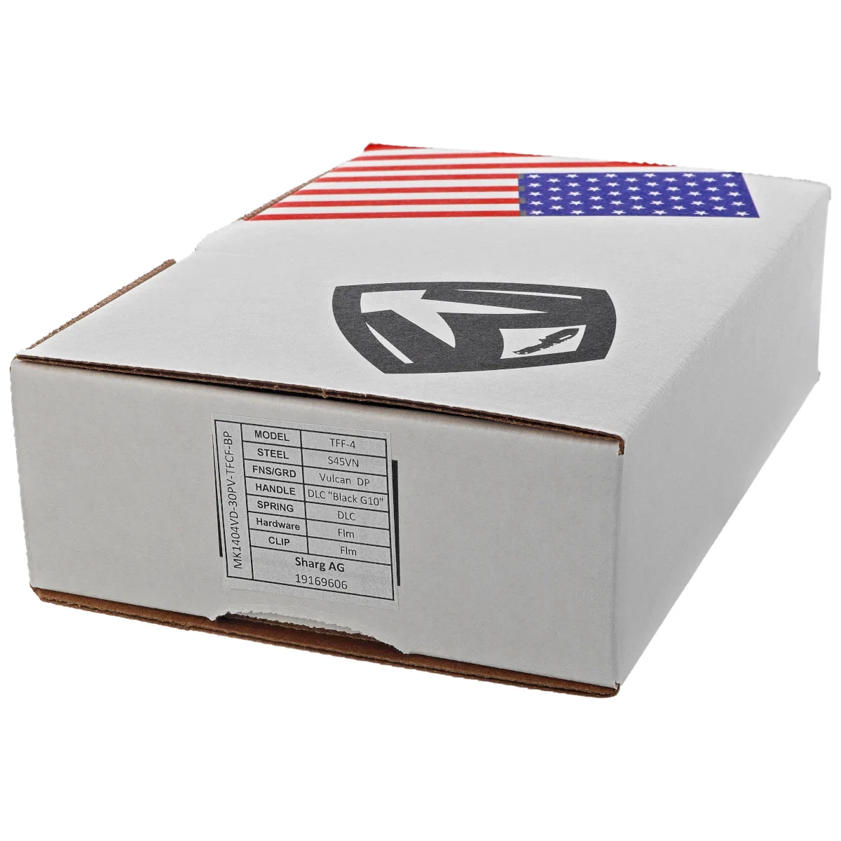 - TFF-4 Drop Point Black Titanium/Black G10, Flm HW, Blue Clip, Vulcan taktyczny nóż klasy premium autorstwa Grega Medforda. Głownia ze stali S45VN, rękojeść z tytanu i kompozytu G10. Niezawodne narzędzie EDC do ekstremalnych zadań.