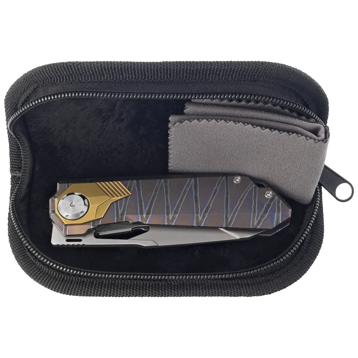 Nóż składany Remette RT-Peregrine Falcon Gray/Brown/Thunder Lightning Titanium, Hand Fine Grinding Pearlescent M390 (RTT1-CX)