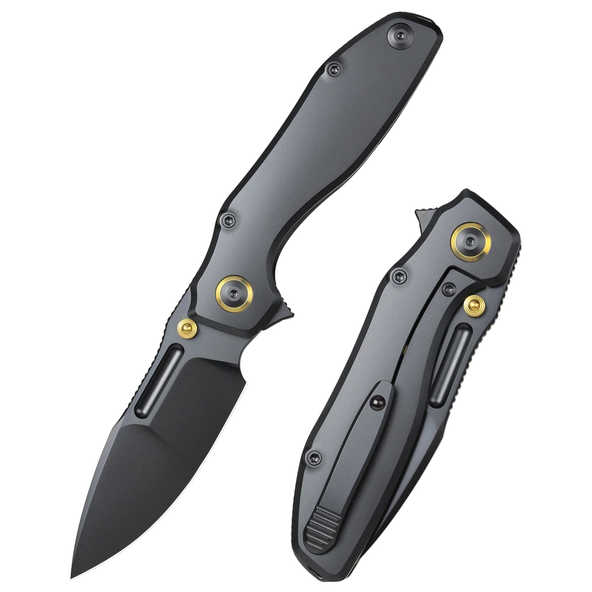 - TwoFace Black DLC Titanium, Black DLC – innowacyjny nóż składany premium z tytanu 6AL4V i stali M390, wyposażony w system wymiennego flippera. Ręczne wykończenie, ergonomia i funkcjonalność dla kolekcjonerów i użytkowników EDC.