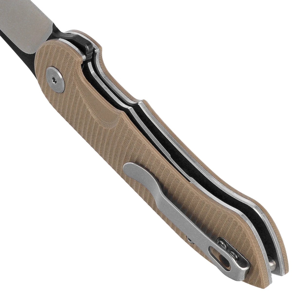 - Torpedo Beige G10, Black Stonewashed / Satin kompaktowy nóż składany EDC o uniwersalnym zastosowaniu. Wykonany z jakością gwarantowaną przez firmę Bestech. Okładziny rękojeści z G10, ostrze ze sprawdzonej stali narzędziowej D2, znakomita cena!