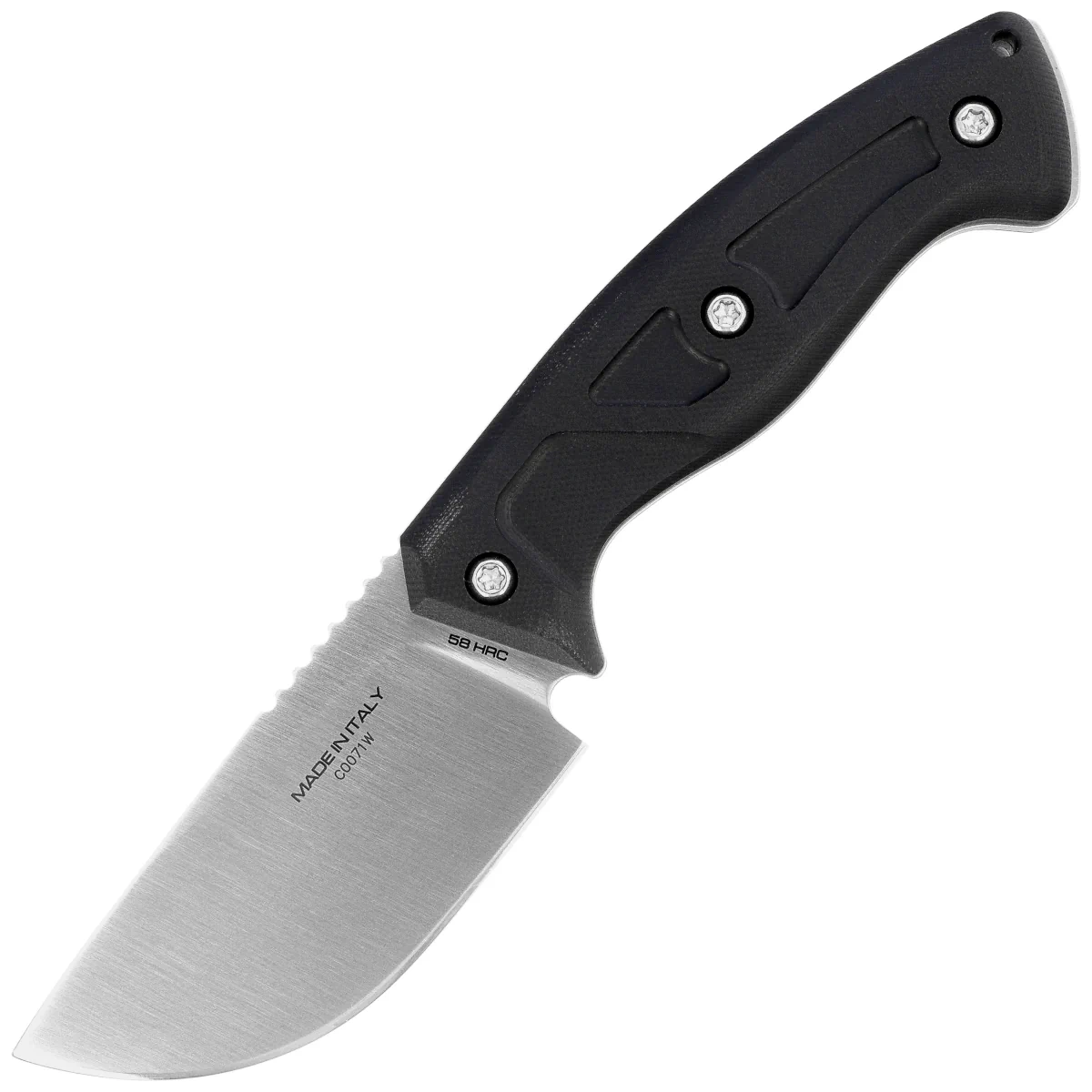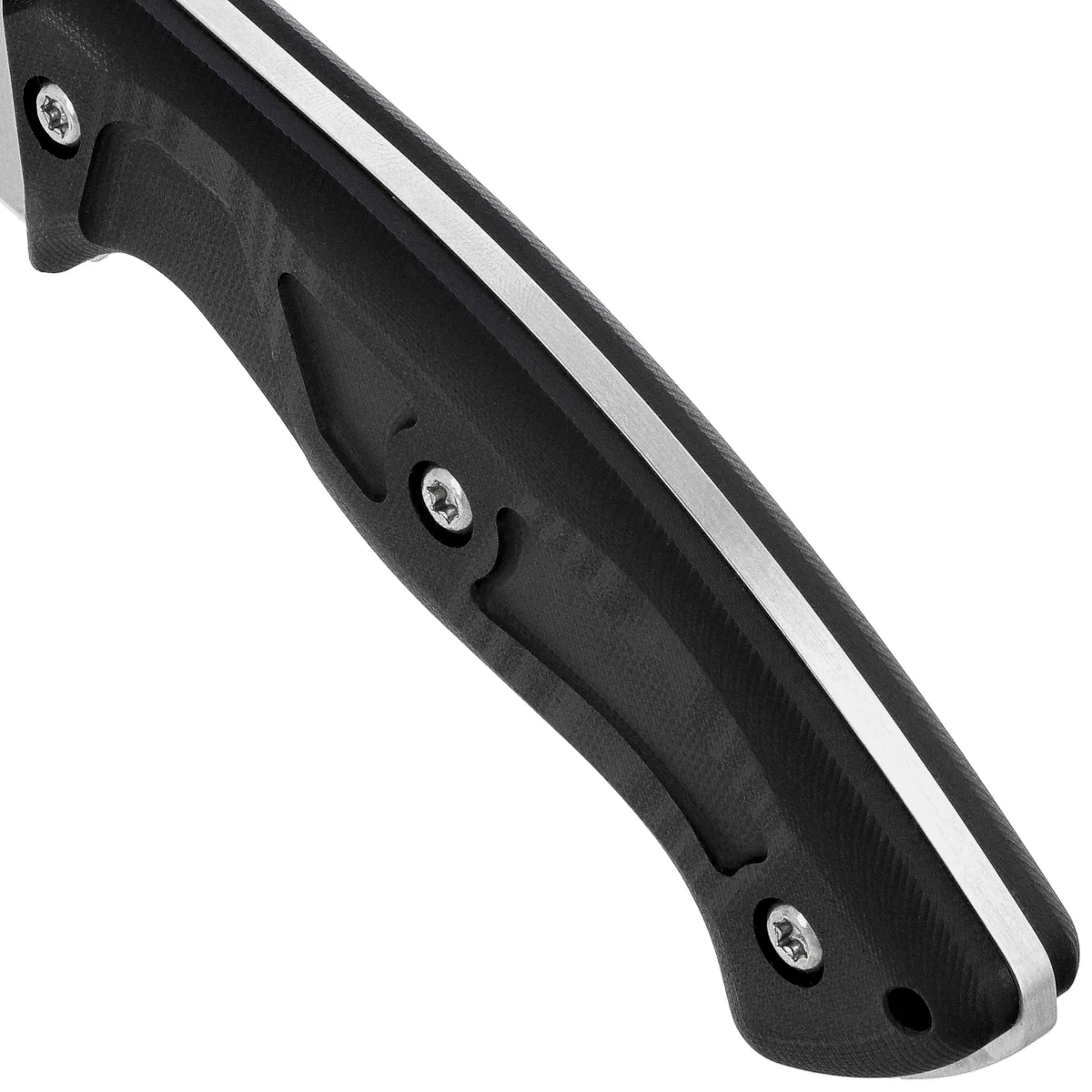 - Venatus S Black G10, Satin Nitrogen – profesjonalny nóż myśliwski o konstrukcji full tang, z głownią typu drop point ze stali Nitrogen i ergonomiczną rękojeścią z kompozytu G10. Projektowany do intensywnego użytkowania terenowego w wymagających warunkach