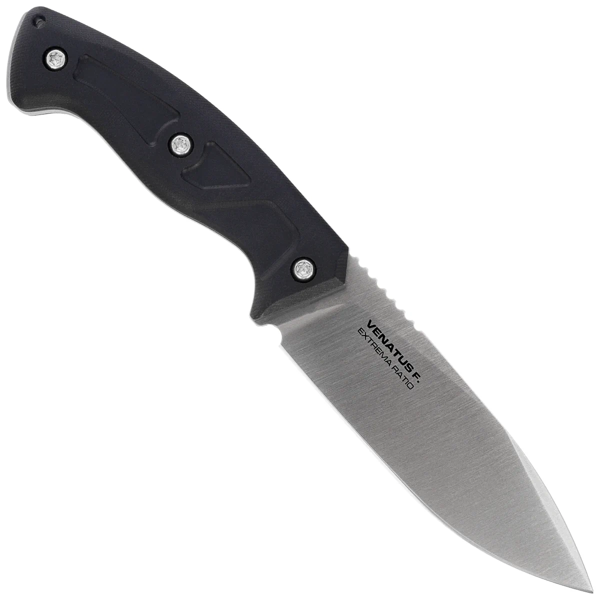 - Venatus F Black G10, Satin N690 – profesjonalny nóż myśliwski o konstrukcji full tang, z głownią typu spear point ze stali N690 i ergonomiczną rękojeścią z kompozytu G10. Projektowany do intensywnego użytkowania terenowego w wymagających warunkach.