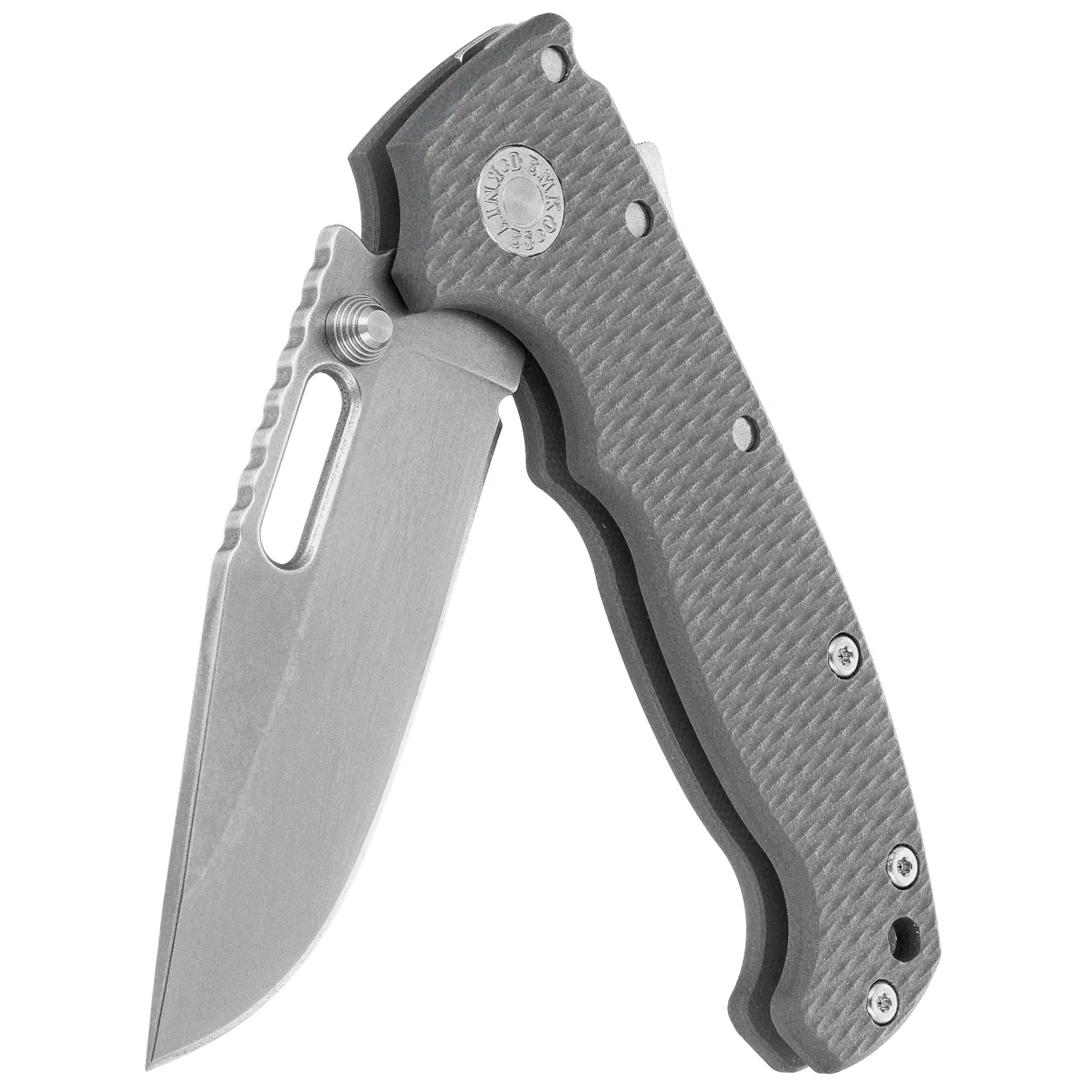 Rękojeść - frezowane okładziny z kompozytu G10, wyróżniające się lekkością, sztywnością i odpornością na warunki zewnętrzne. Wyczuwalna tekstura i profilowane podcięcia wspierają pewny chwyt, także w rękawicach. Stalowe tuleje dystansowe zwiększają sztywność całej konstrukcji, a klips deep carry umożliwia wygodne i dyskretne przenoszenie w kieszeni. Dodatkowo w zestawie klips na lewą stronę, dla osób leworęcznych. Elementy montażowe w systemie Torx upraszczają demontaż i serwisowanie noża. Shark-Lock™, umieszczony w górnej części rękojeści, działa błyskawicznie, zapewniając pełną kontrolę i bezpieczeństwo, niezależnie od preferowanego chwytu czy dominującej ręki.