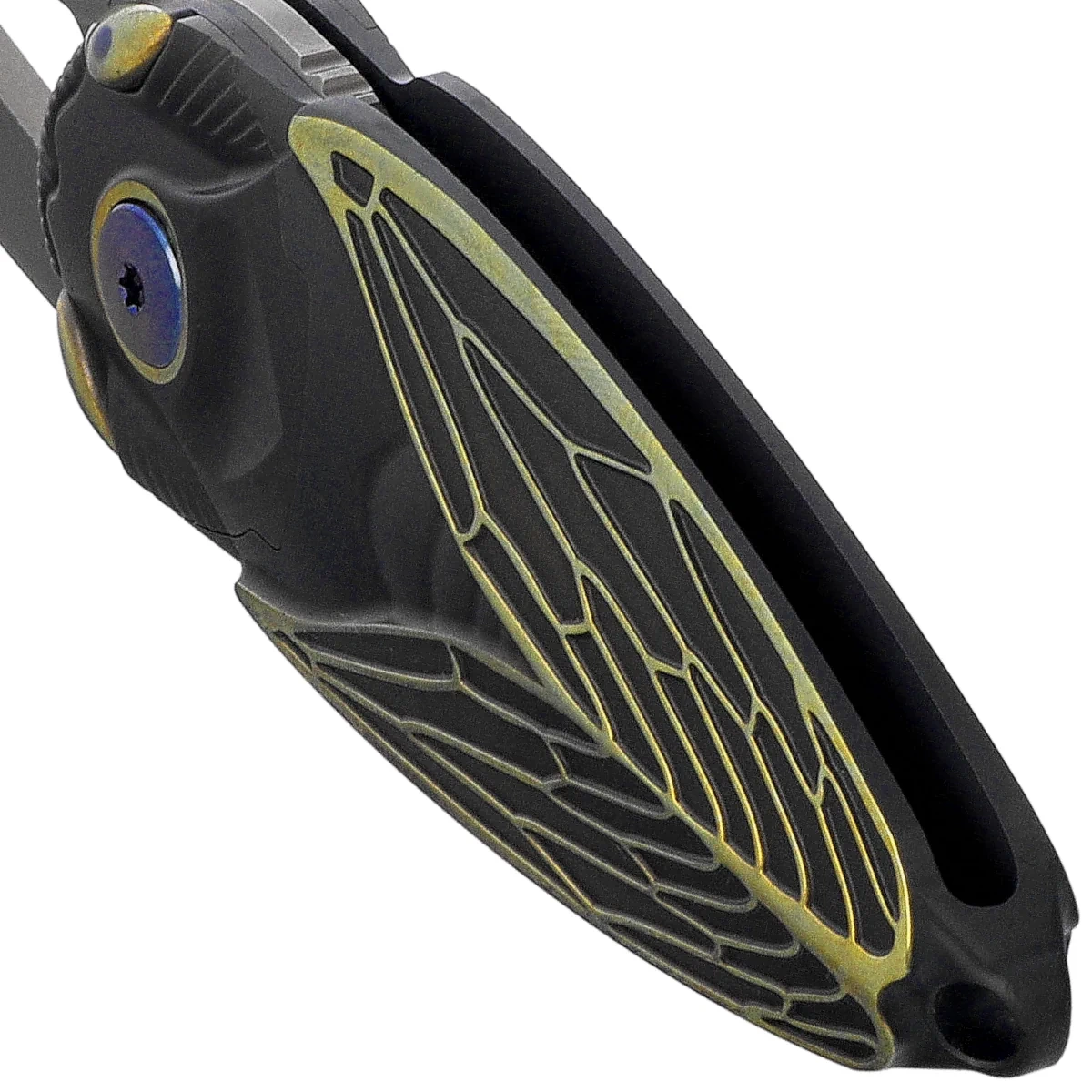- Cicada-DG Dark Gray/Gold Titanium, Bead Blasted – nowoczesny nóż składany premium od Rike Knife, z głownią ze stali M390 i frezowaną rękojeścią z tytanu. Biomechaniczna forma, kolekcjonerski charakter i techniczna precyzja w jednym projekcie.