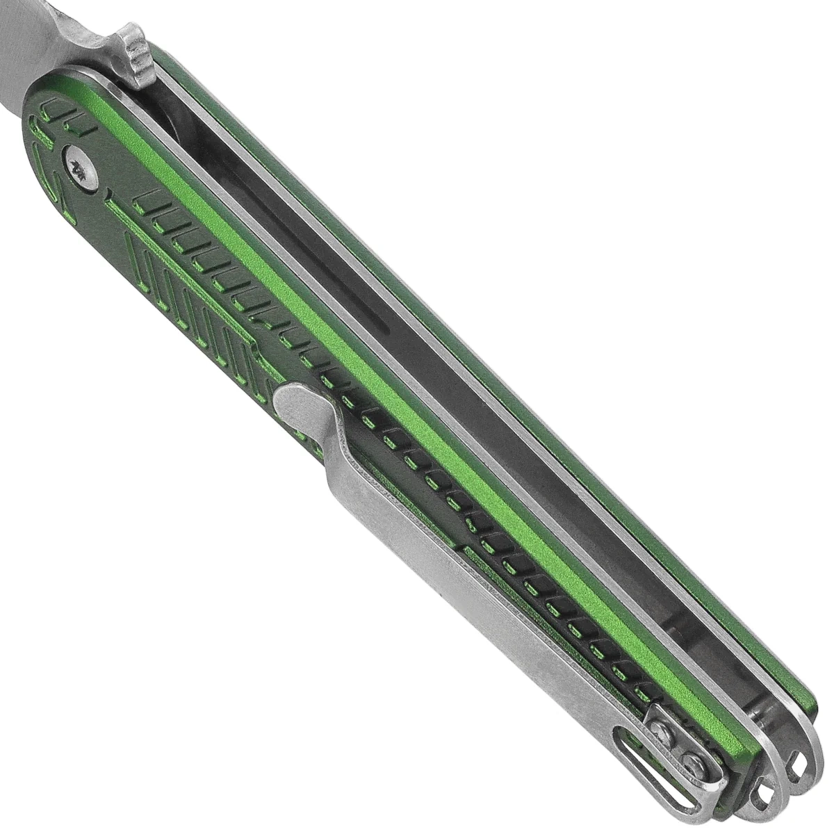 - Green Aluminium, Satin 3Cr13Mov (25042) – składany nóż EDC z głownią typu spear point wykonaną ze stali 3Cr13Mov i rękojeścią z anodyzowanego aluminium. Lekka, odporna konstrukcja o dynamicznej linii i nowoczesnym wykończeniu.