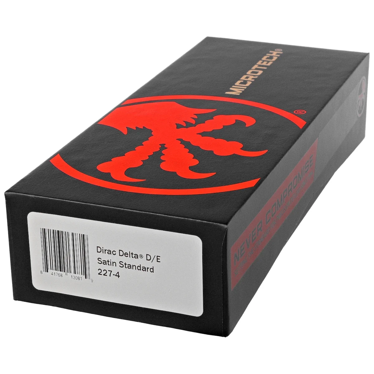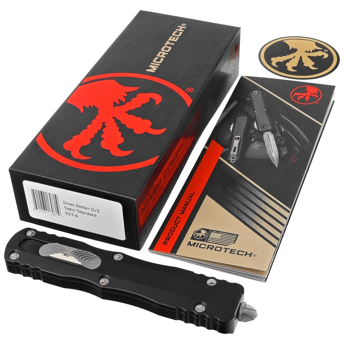 Dirac Delta® to powiększona wersja pierwszego automatycznego noża OTF D/A (Double Action) w ofercie Microtech®, wyposażonego w suwak (slider) umieszczony w zagłębieniu bocznym rękojeści. Model ten posiada nowoczesną, ergonomiczną rękojeść o zakrzywionych liniach inspirowanych kultowym modelem HALO®. W serii Dirac Delta® zastosowano charakterystyczne dla Microtech® rozwiązania klasy premium – opatentowane śruby, innowacyjny mechanizm wewnętrzny oraz funkcjonalny zbijak do szyb (glass breaker). Przy całkowitej długości 9,25 cala, Dirac Delta® to znakomity wybór jako nóż codziennego użytku (EDC).