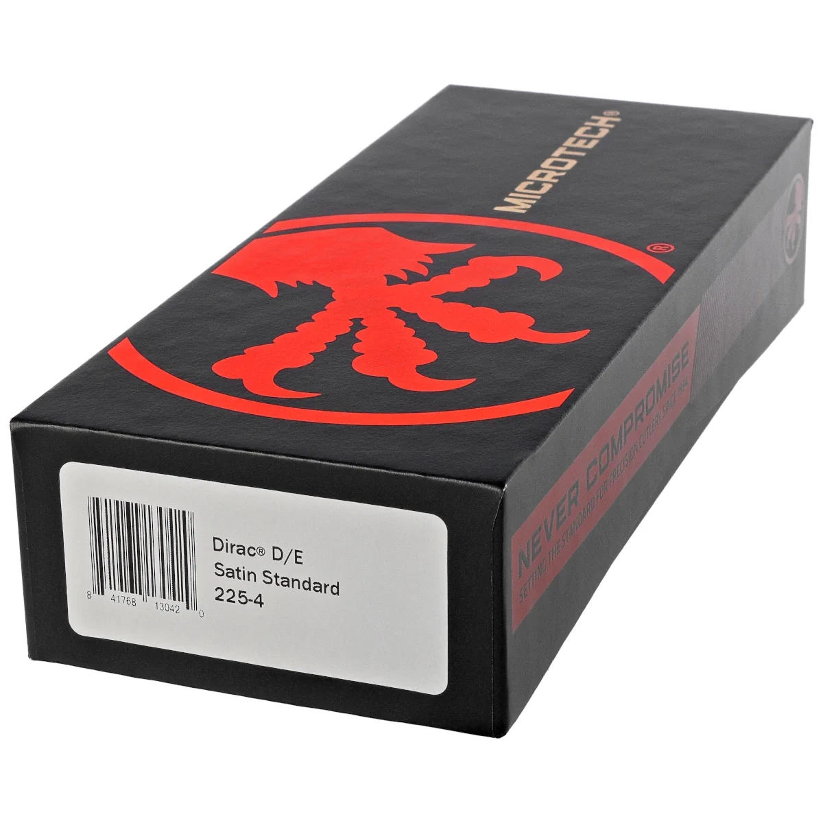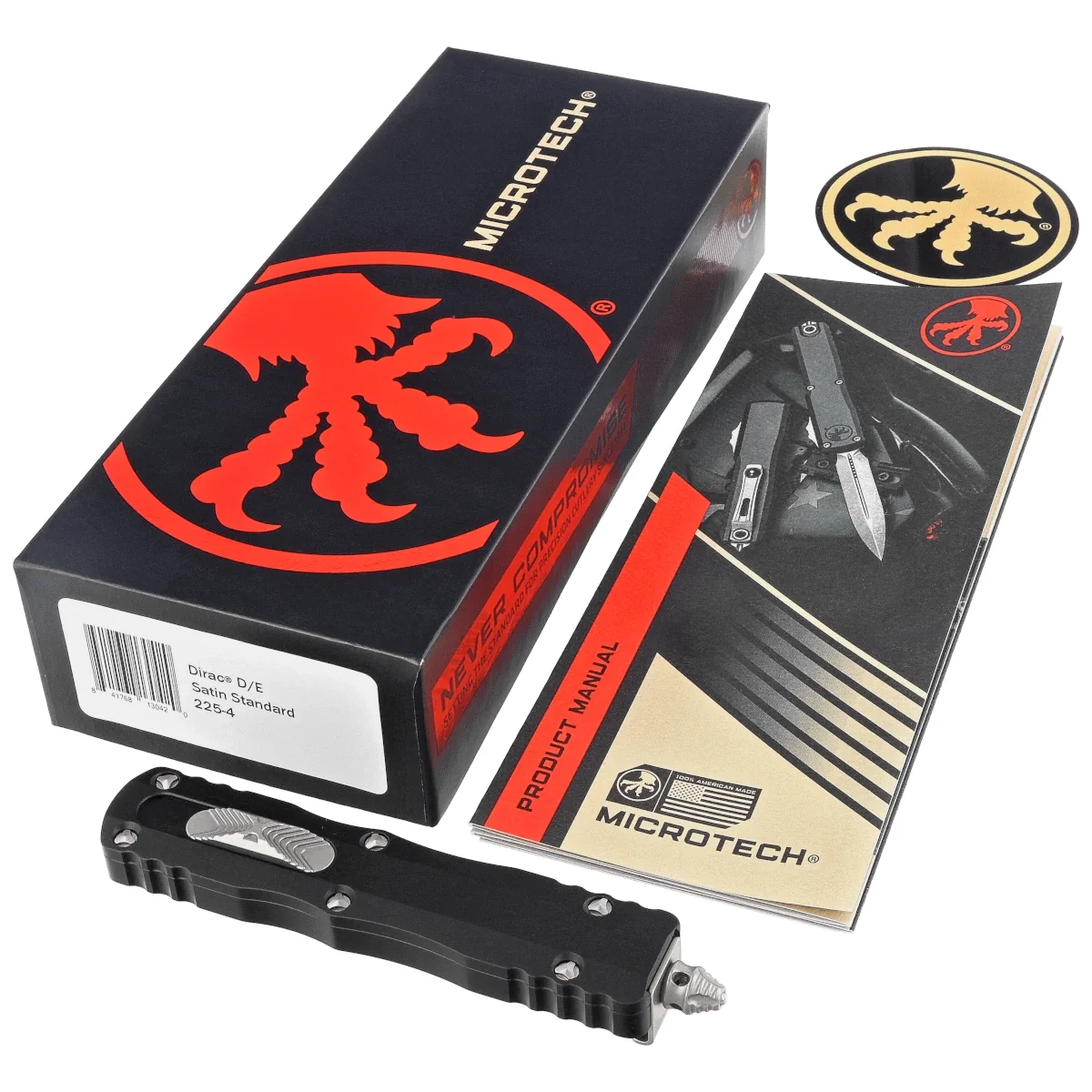 Dirac® - pierwszy automat OTF (Out The Front) D/A (Double Action) w ofercie Microtecha z suwakiem slidera umieszczonym w zagłębieniu rękojeści. Unowocześniona, ergonomiczna rękojeść z zakrzywionymi liniami podobnymi do HALO®. Zastosowano w tej linii charakterystyczne rozwiązania Microtecha® o ultra wysokiej jakości, takie jak opatentowane śruby, innowacyjny mechanizm wewnętrzny i zbijak do szyb. Przy całkowitej długości 7,25 cala, Dirac® doskonale się nadaje na nóż codziennego użytku (EDC).
