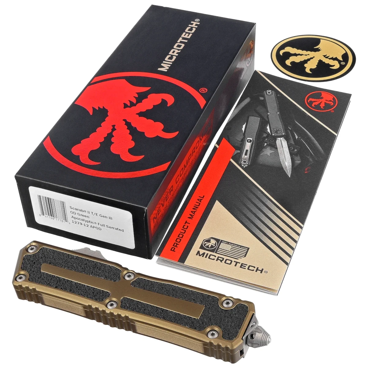 Nóż automatyczny OTF Microtech Scarab II Gen III T/E OD Green Aluminium, Apocalyptic F/S M390MK by Tony Marfione (1279-12APOD)