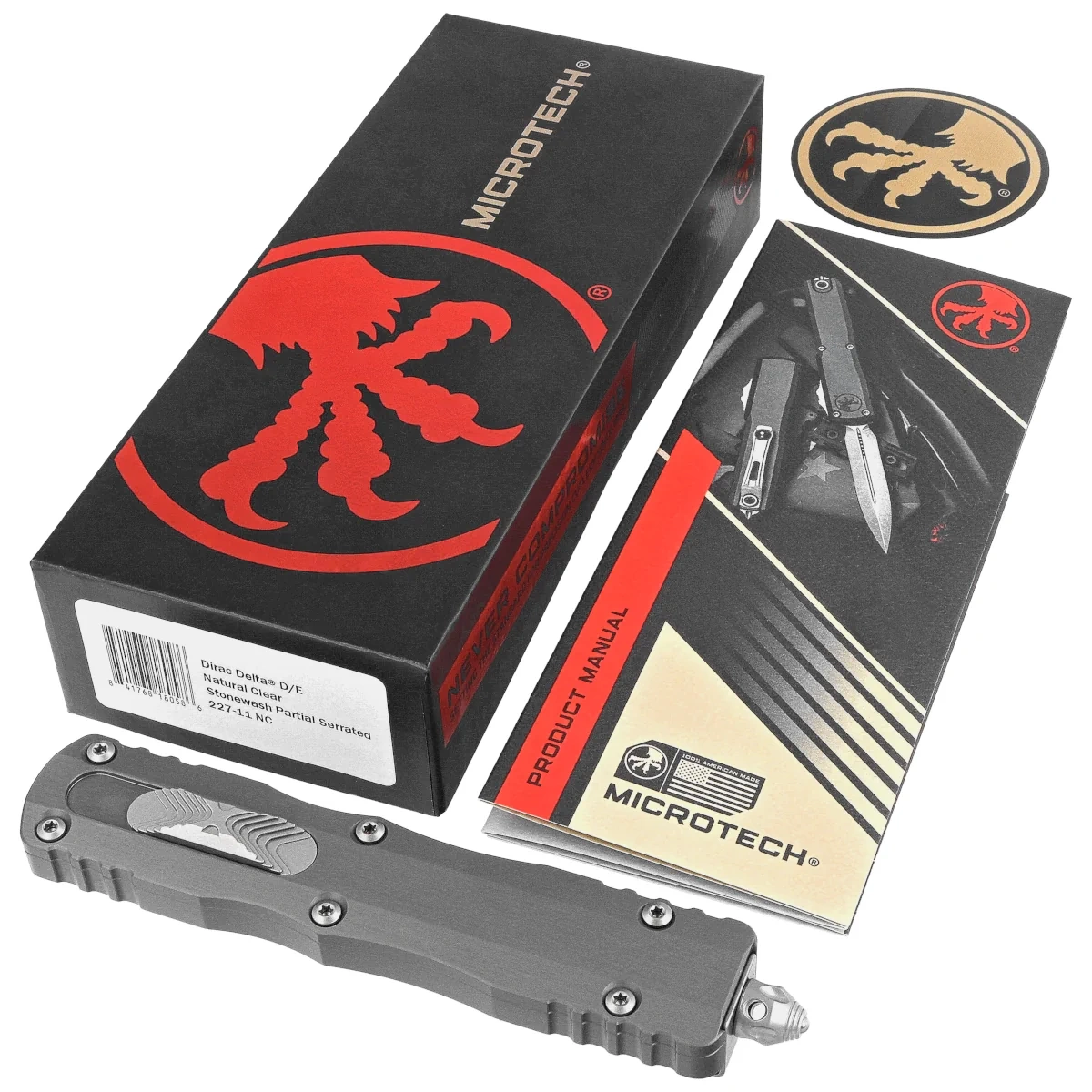 Dirac Delta® to powiększona wersja pierwszego automatycznego noża OTF D/A (Double Action) w ofercie Microtech®, wyposażonego w suwak (slider) umieszczony w zagłębieniu bocznym rękojeści. Model ten posiada nowoczesną, ergonomiczną rękojeść o zakrzywionych liniach inspirowanych kultowym modelem HALO®. W serii Dirac Delta® zastosowano charakterystyczne dla Microtech® rozwiązania klasy premium – opatentowane śruby, innowacyjny mechanizm wewnętrzny oraz funkcjonalny zbijak do szyb (glass breaker). Przy całkowitej długości 9,25 cala, Dirac Delta® to znakomity wybór jako nóż codziennego użytku (EDC).