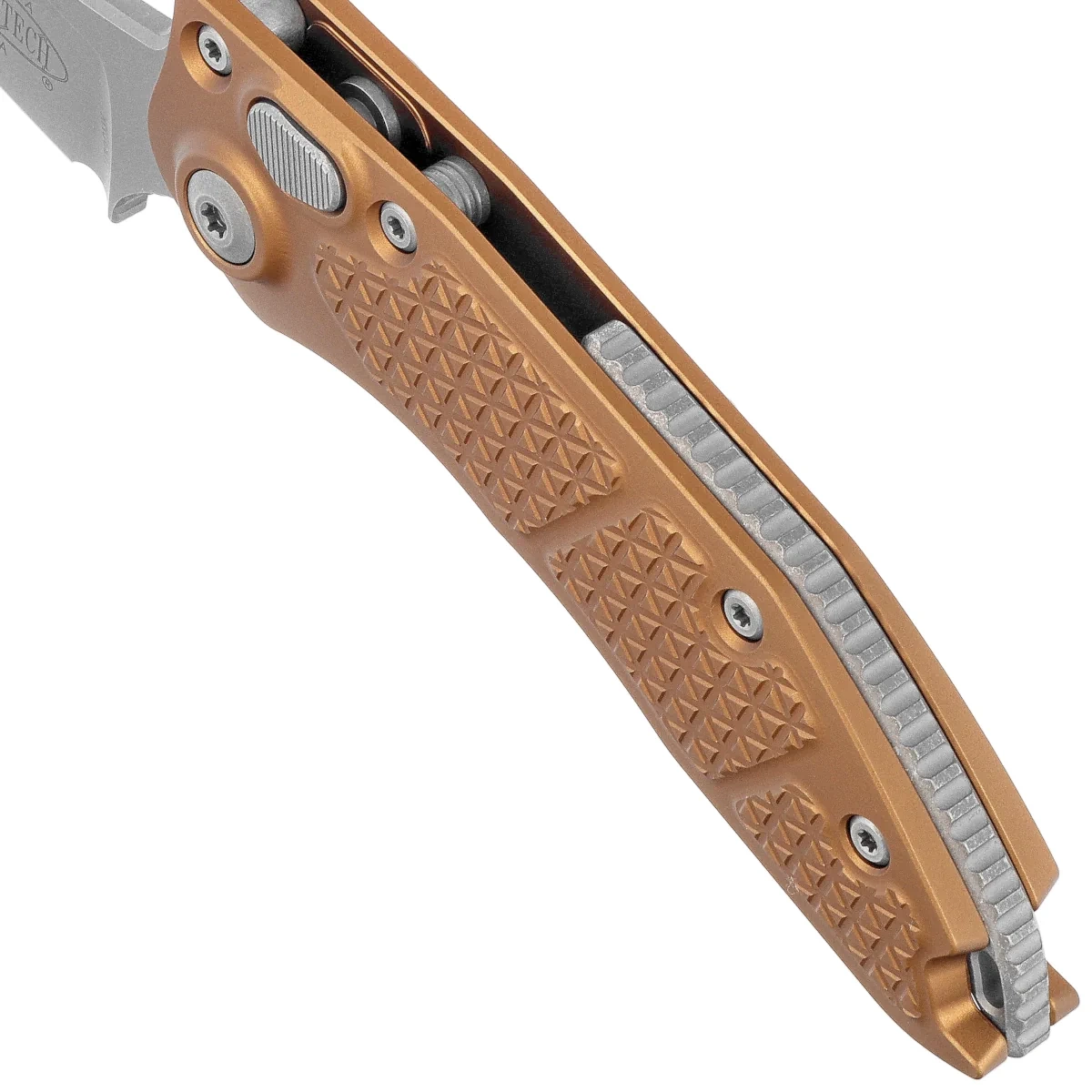 Nóż automatyczny Microtech Stitch-A S/E Tan Aluminium, Apocalyptic M390 by Borka Blades and Tony Marfione (169-10APTA)