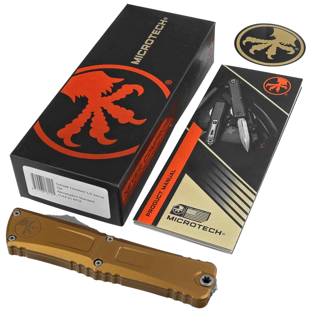 Nóż automatyczny OTF Microtech Combat Troodon Gen III T/E Tan Aluminium, Apocalyptic M390MK by Tony Marfione (1144-10APTA)