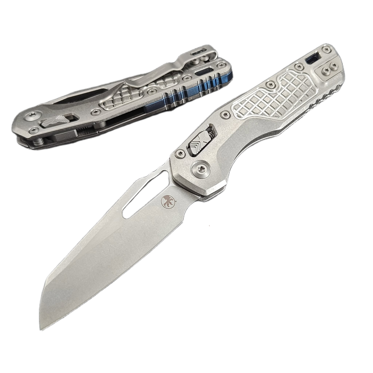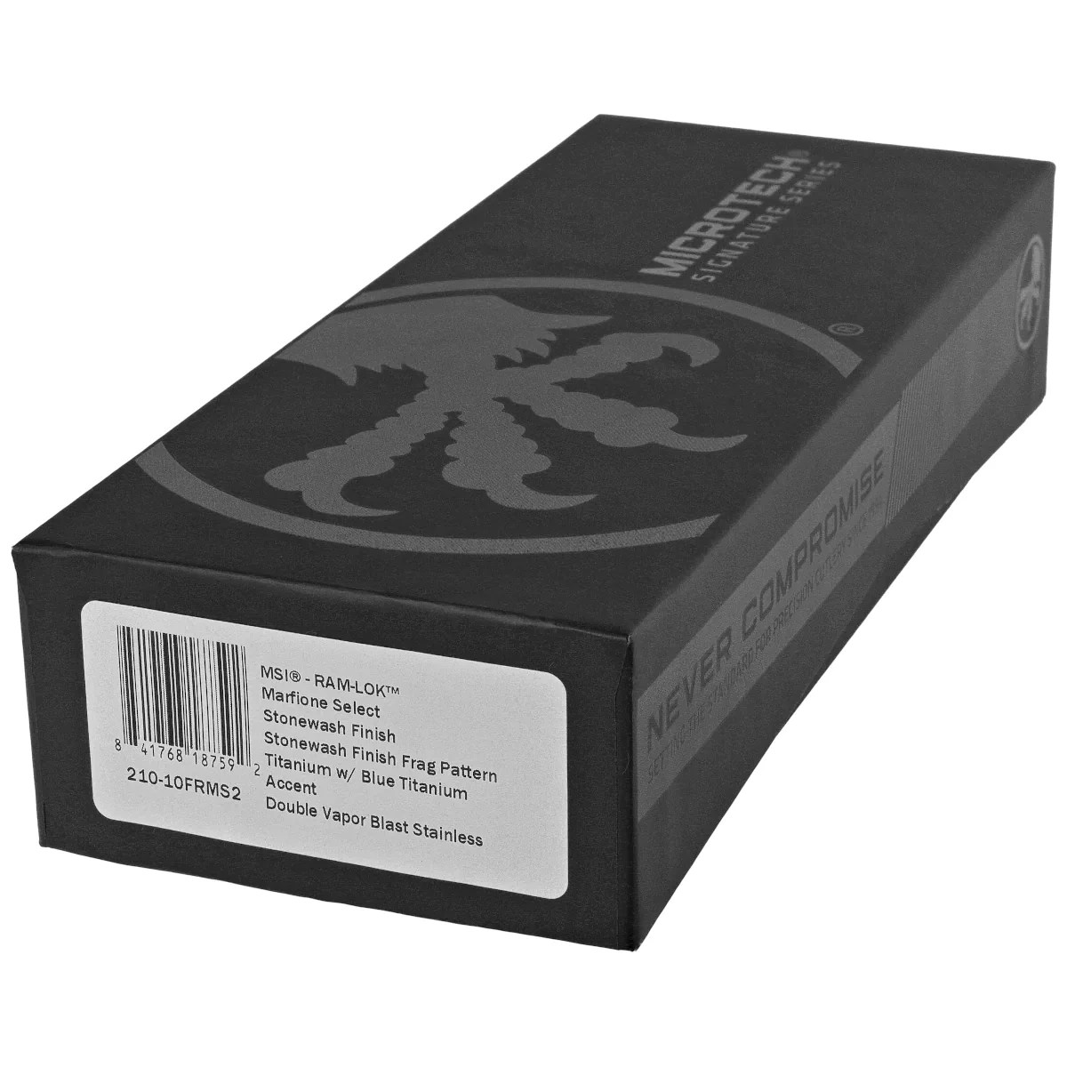 Nóż składany Microtech MSI S/E Ram-Lok Marfione Select Frag Titanium, Blue HW, Stonewashed M390MK by Tony Marfione (210-10FRMS2)
