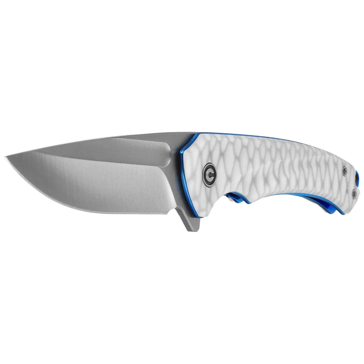Głownia - typu drop point została wykonana z wytrzymałej stali nierdzewnej 14C28N, oferującej dobrą retencję ostrości, odporność na rdzę oraz łatwość ostrzenia. Szlif wklęsły zapewnia precyzyjne prowadzenie ostrza, a satynowana powierzchnia nadaje mu eleganckiego wyglądu. Otwieranie odbywa się za pomocą flippera, który w połączeniu z łożyskami ceramicznymi gwarantuje aksamitnie płynny ruch ostrza – bez oporu, bez hałasu, z natychmiastową gotowością do działania.