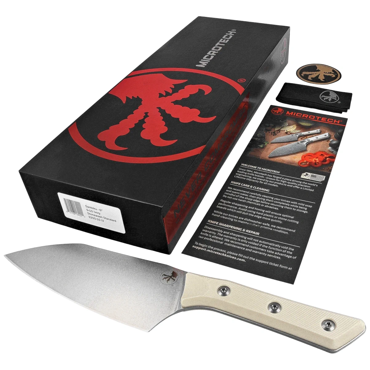 - Santoku 6" Ivory G10, Stonewashed – kuchenny nóż premium, łączący precyzyjną głownię Santoku ze stali M390MK z ergonomiczną rękojeścią z kompozytu G10. Wyjątkowe połączenie trwałości, precyzji i nowoczesnej estetyki dla wymagających użytkowników.