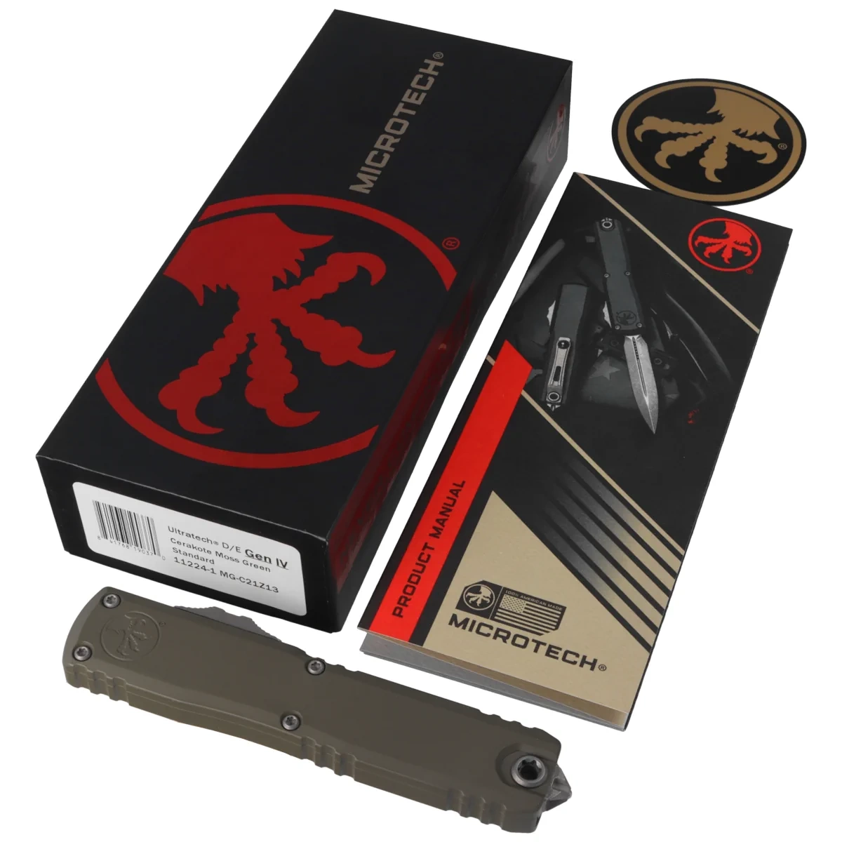 Ultratech Gen IV D/E Cerakote Moss Green Aluminium, Cerakote Moss Green to pełnowymiarowy nóż automatyczny OTF (Out The Front) z serii Ultratech. Czwarta generacja wyróżnia się szeregiem usprawnień, takich jak; Crud Kutter™, Dual-Fuel Drive Train™. Przeprojektowano również rękojeść, wyposażając ją w rozwiązania znane z innych modeli. Pracujący w trybie D/A (Double Action), umożliwia błyskawiczne wysunięcie i schowanie ostrza za pomocą jednego ruchu kciuka. Projekt autorstwa Tony’ego Marfione, właściciela Microtech Knives, łączy w sobie nowoczesny design z najwyższą jakością wykonania.