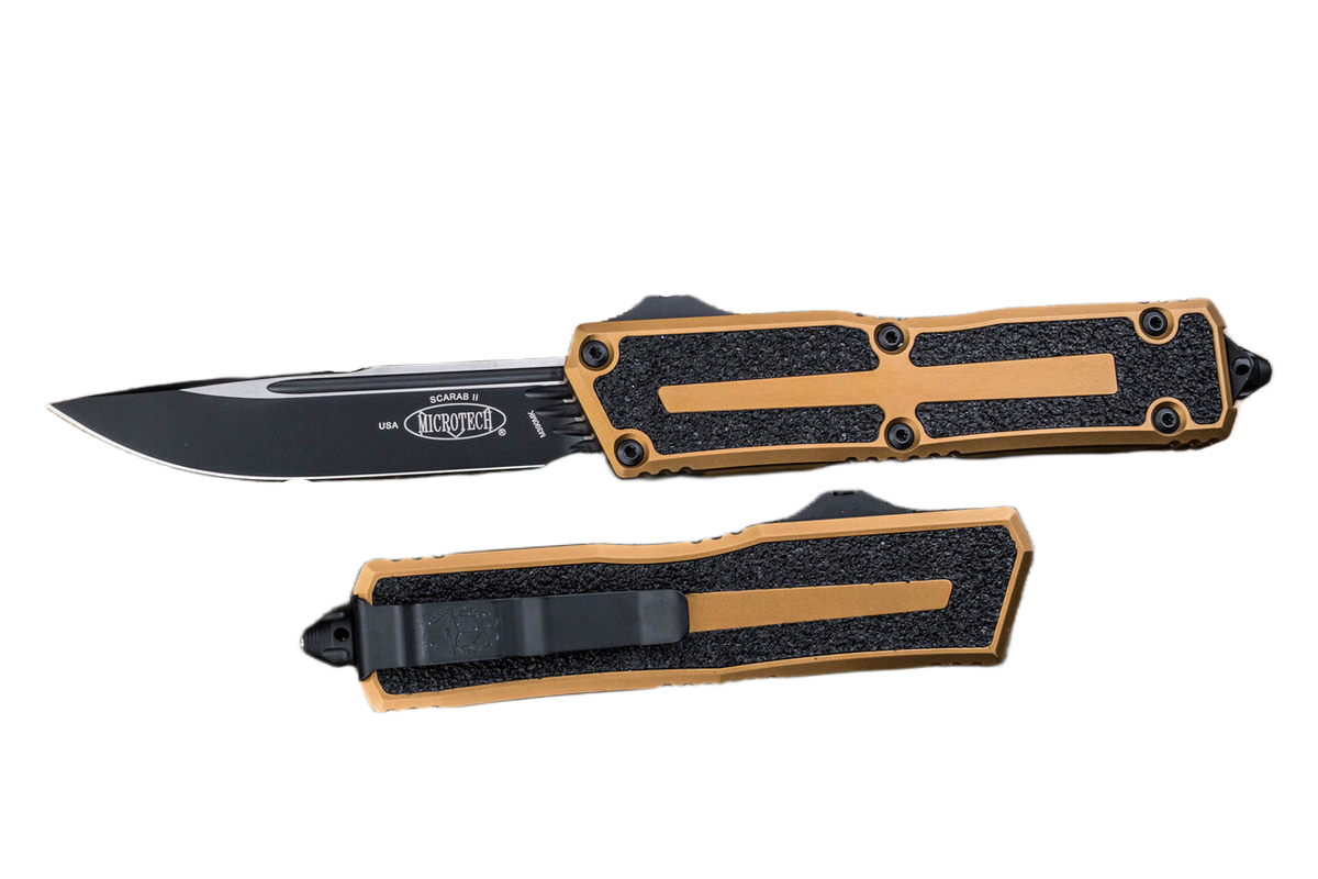 Scarab II Gen III S/E  Tan Aluminium, Black to szczyt doskonałości w dziedzinie automatycznych noży taktycznych, czerpiący inspirację z oryginalnego projektu Microtech Ultratech. Zbudowany, aby wytrzymać najtrudniejsze warunki, nowy Scarab II jest najlepszym wyborem do intensywnego użytkowania. Zachowując cechy stylistyczne swojego poprzednika, wyznacza nowy standard dla technologii OTF (Out The Front).