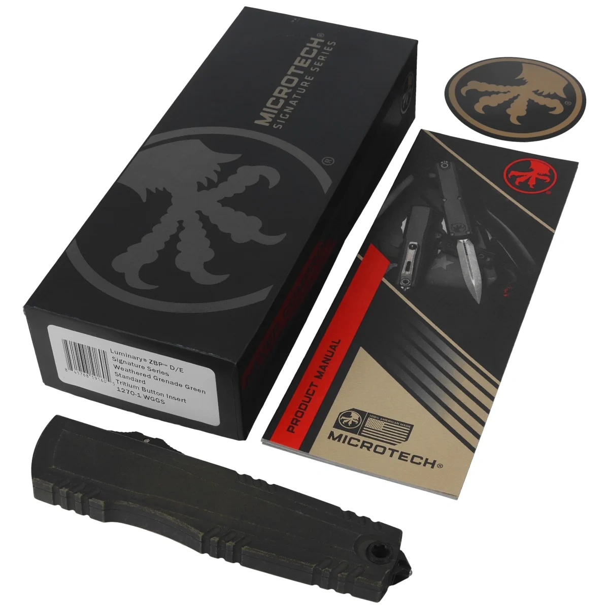 Nóż automatyczny OTF Microtech Luminary ZBP D/E Signature Weathered Grenade Green Aluminium, Weathered Grenade Green M390MK by Tony Marfione (1270-1WGGS)