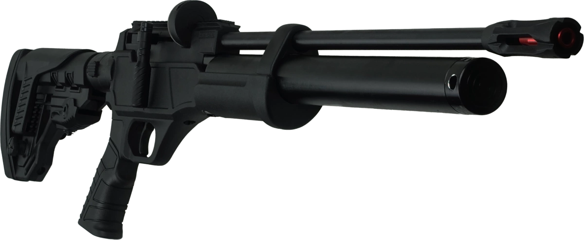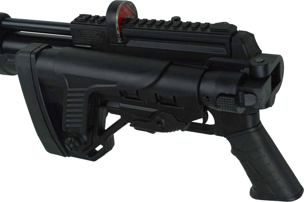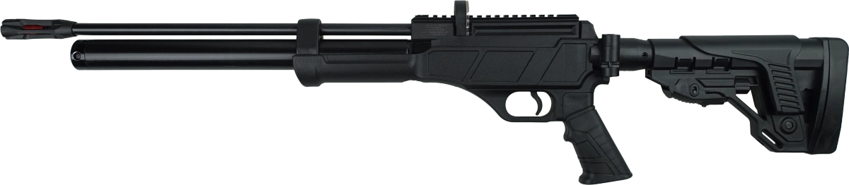 Osada - taktyczna, z gumowanym chwytem pistoletowym oraz w pełni regulowaną kolbą w systemie AR-15. Teleskopowa kolba posiada regulowaną w pionie bakę policzkową, gumowaną stopkę. Składana na bok kolba ułatwia przenoszenie. Korpus wiatrówki wykonany z wytrzymałego polimeru.