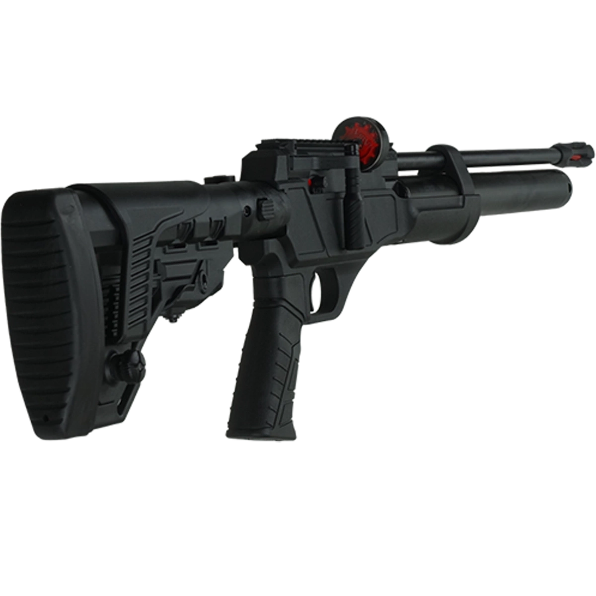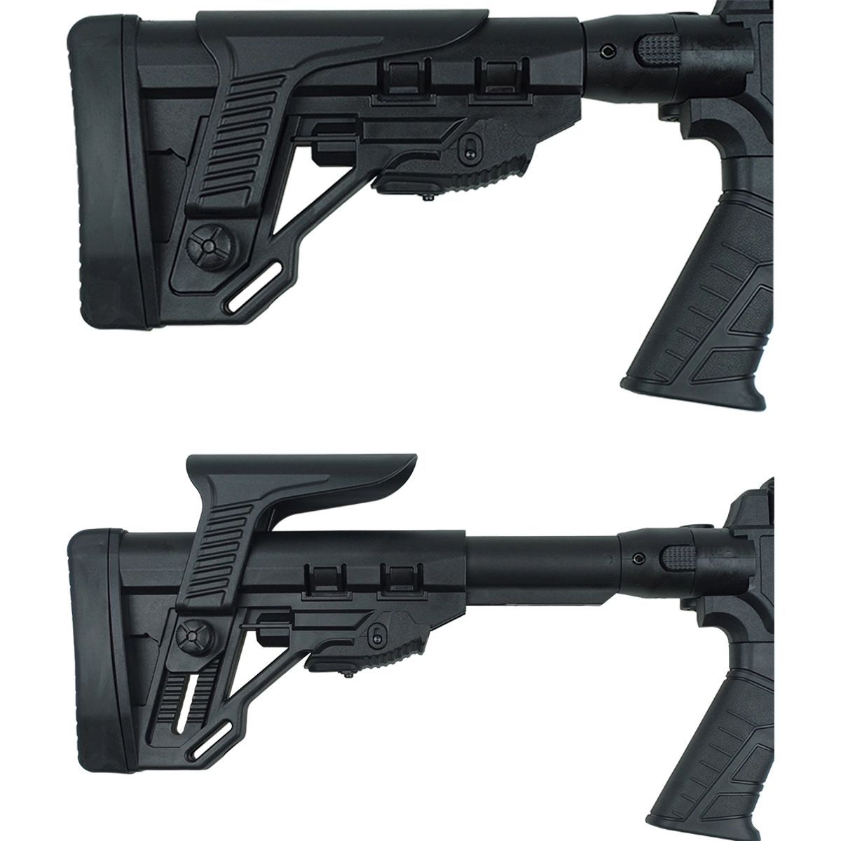 Osada - taktyczna, z gumowanym chwytem pistoletowym oraz w pełni regulowaną kolbą w systemie AR-15. Teleskopowa kolba posiada regulowaną w pionie bakę policzkową, gumowaną stopkę. Składana na bok kolba ułatwia przenoszenie. Korpus wiatrówki wykonany z wytrzymałego polimeru.
