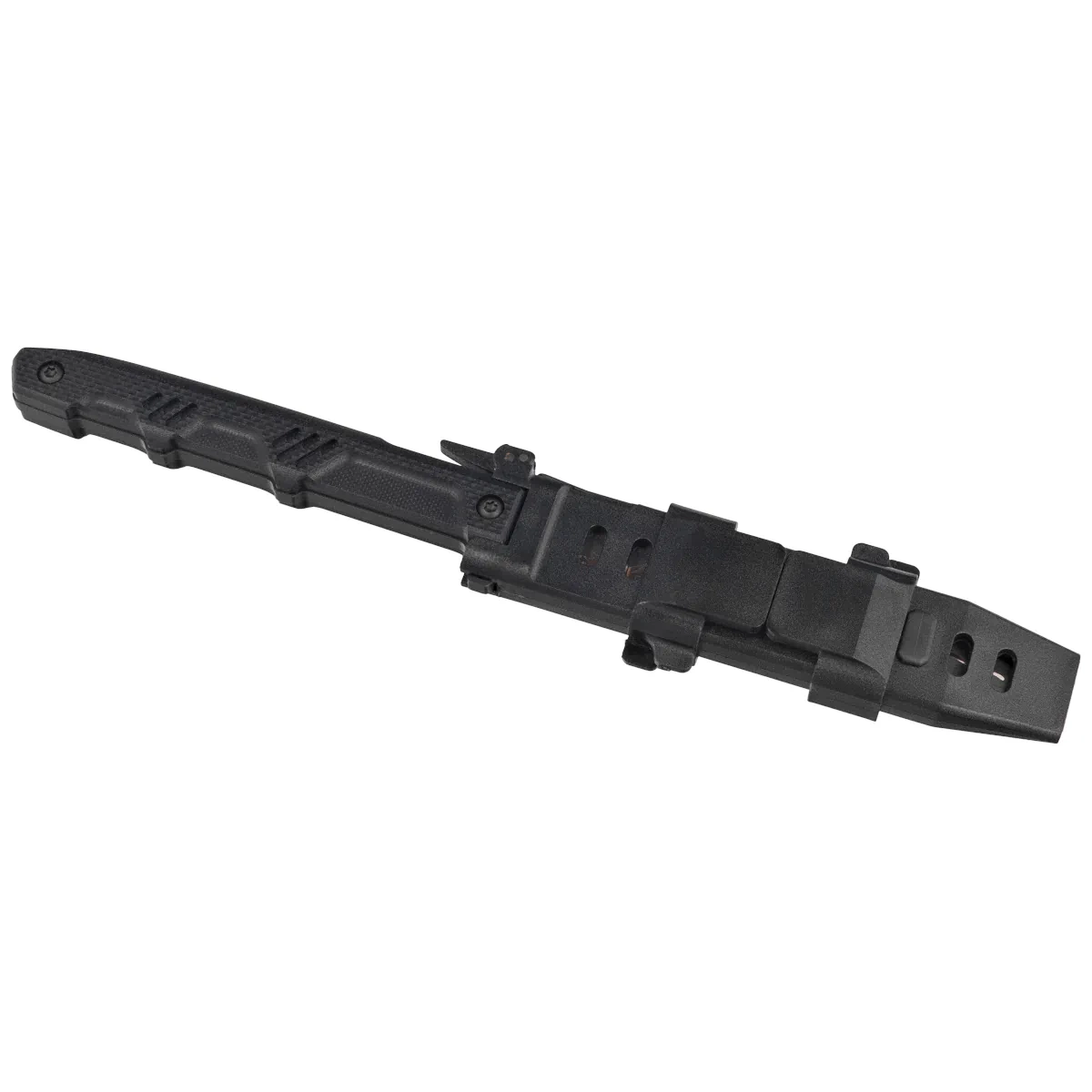 Pochwa - przy projektowaniu noża do profesjonalnego użytku duży nacisk położono na łatwość przenoszenia, dostępu oraz dobywania. Nóż jest mocowany do pochwy taktycznej za pomocą szybko zwalnianego bezpiecznika (zatrzasku), który można łatwo odwrócić umożliwiając dostosowanie sposobu przenoszenia kabury zarówno dla praworęcznych jak i leworęcznych użytkowników. Przypominający spust zatrzask umożliwia szybkie, instynktowne wyciągnięcie noża oraz zabezpiecza nóż przed wypadnięciem. Ażurowa kabura ułatwia osuszanie głowni. System dwóch regulowanych wielopozycyjnych zacisków umożliwia szybkie mocowanie pochwy pod taśmy systemu M.O.L.L.E. W zestawie mamy również drugą pochwę przystosowaną do zastosowań EDC, wykonaną z kydexu.