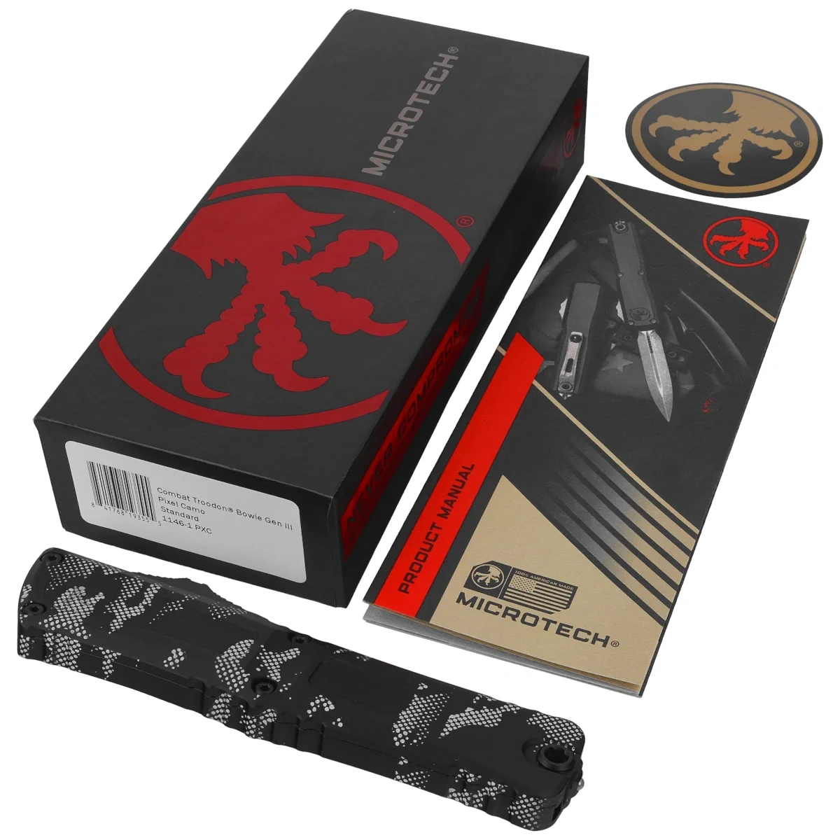 Nóż automatyczny OTF Microtech Combat Troodon Gen III Bowie Pixel Camo Aluminium, Pixel Camo M390MK by Tony Marfione (1146-1PXC)