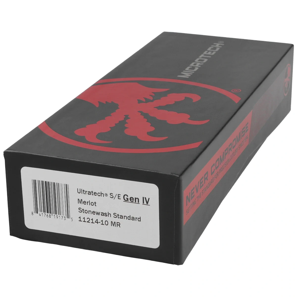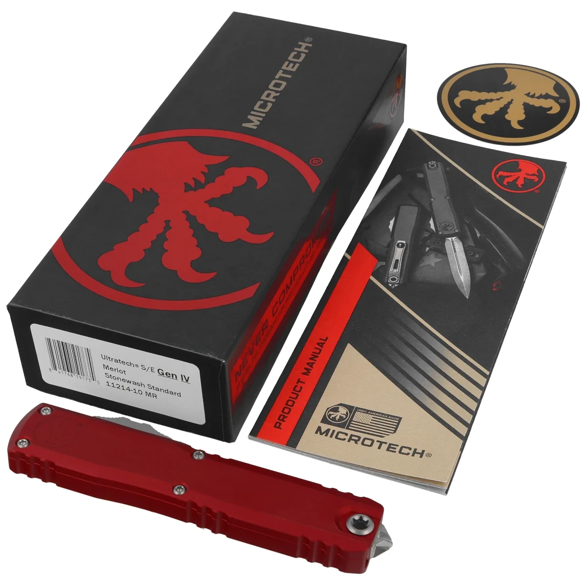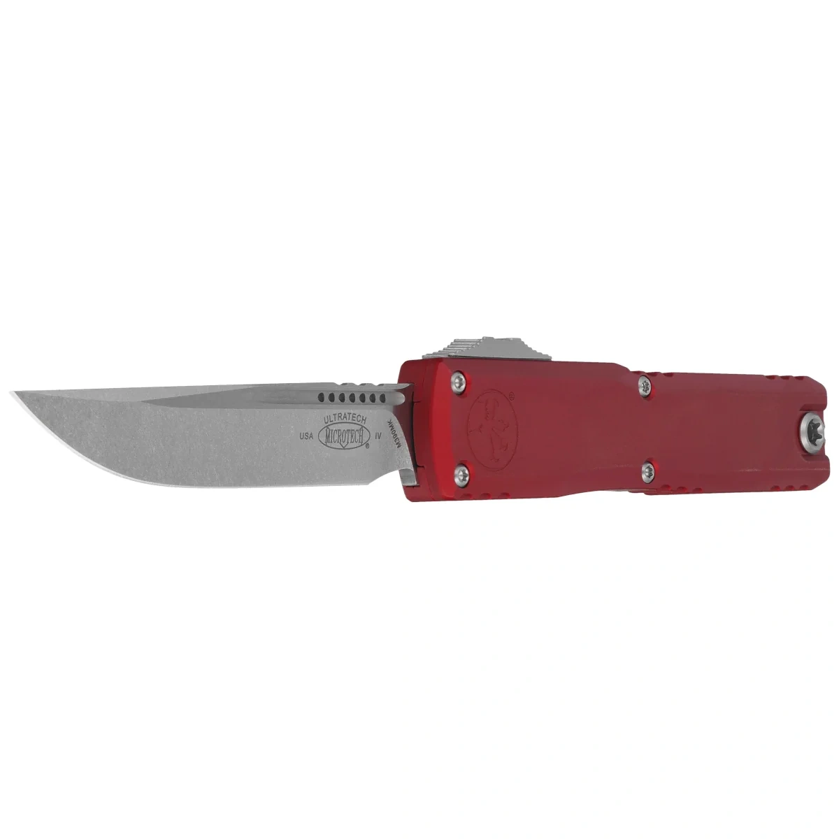 Ultratech Gen IV S/E Merlot Aluminium, Stonewashed to pełnowymiarowy nóż automatyczny OTF (Out The Front) z serii Ultratech. Czwarta generacja wyróżnia się szeregiem usprawnień, takich jak; Crud Kutter™, Dual-Fuel Drive Train™. Przeprojektowano również rękojeść, wyposażając ją w rozwiązania znane z innych modeli. Pracujący w trybie D/A (Double Action), umożliwia błyskawiczne wysunięcie i schowanie ostrza za pomocą jednego ruchu kciuka. Projekt autorstwa Tony’ego Marfione, właściciela Microtech Knives, łączy w sobie nowoczesny design z najwyższą jakością wykonania.