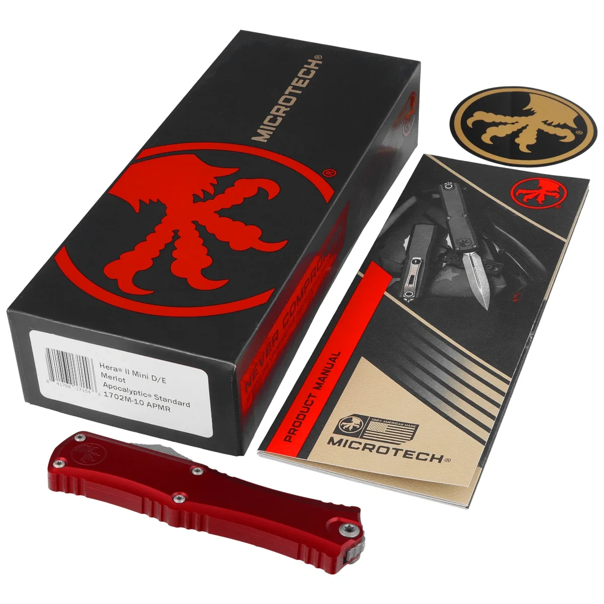 Nóż automatyczny OTF Microtech Hera II Mini D/E Merlot Aluminium, Apocalyptic M390MK by Tony Marfione (1702M-10APMR)