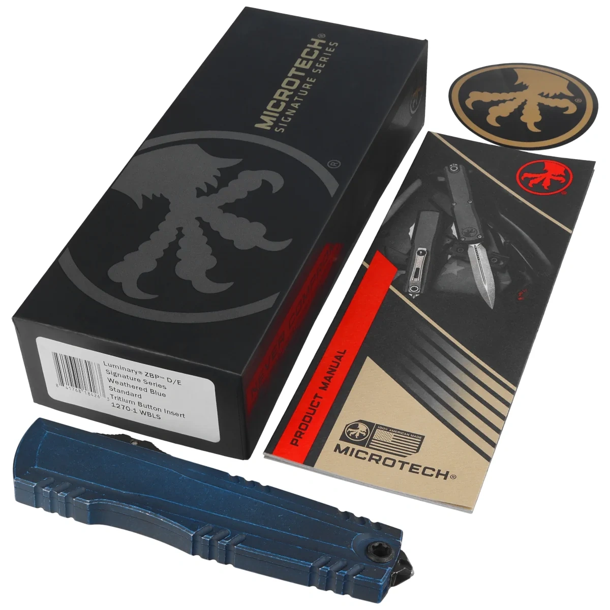 Nóż automatyczny OTF Microtech Luminary ZBP D/E Signature Weathered Blue Aluminium, Weathered Blue M390MK by Tony Marfione (1270-1WBLS)