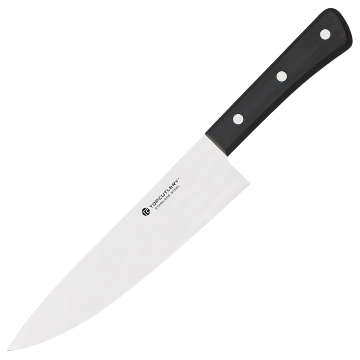 - Chef 20cm Black ABS, Satin (17487) to uniwersalny nóż kuchenny typu Chef, głownia ze stali nierdzewnej 3Cr13Mov, ergonomiczna rękojeść z kompozytu ABS. Doskonały do codziennego gotowania, łączy wytrzymałość, prostotę formy i komfort pracy.