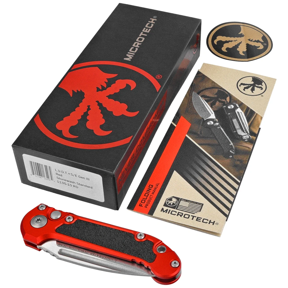 Nóż automatyczny Microtech LUDT Gen III S/E Red Aluminium, Stonewashed M390MK by Tony Marfione (1135-10RD)