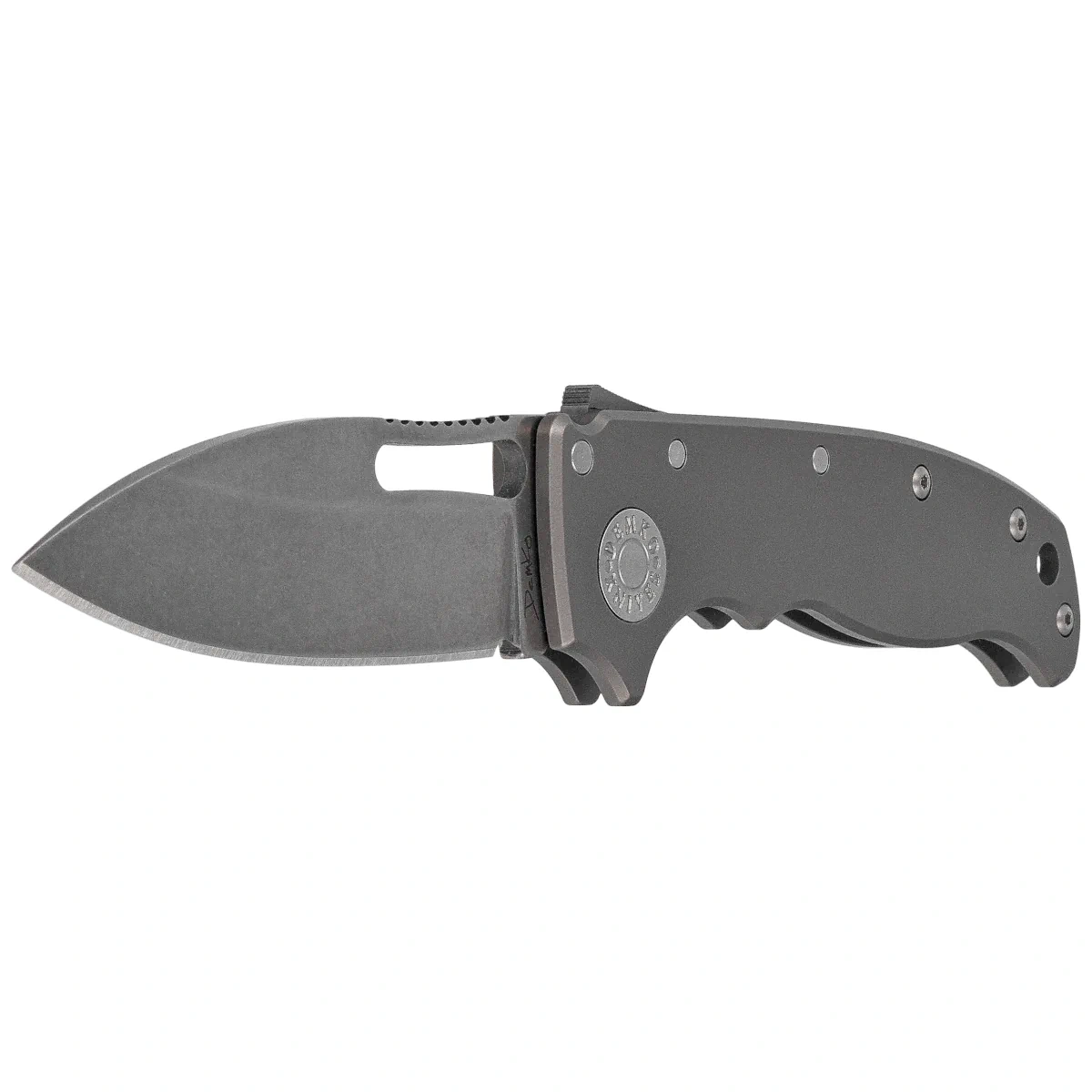 - AD20.5 Slicer Shark Smooth Titanium, Stonewashed, kompaktowy nóż składany klasy premium z frezowaną rękojeścią z tytanu, głownią ze stali CPM 3V i opatentowaną blokadą Shark-Lock™. Projekt Andrew Demko dla najbardziej wymagających użytkowników.