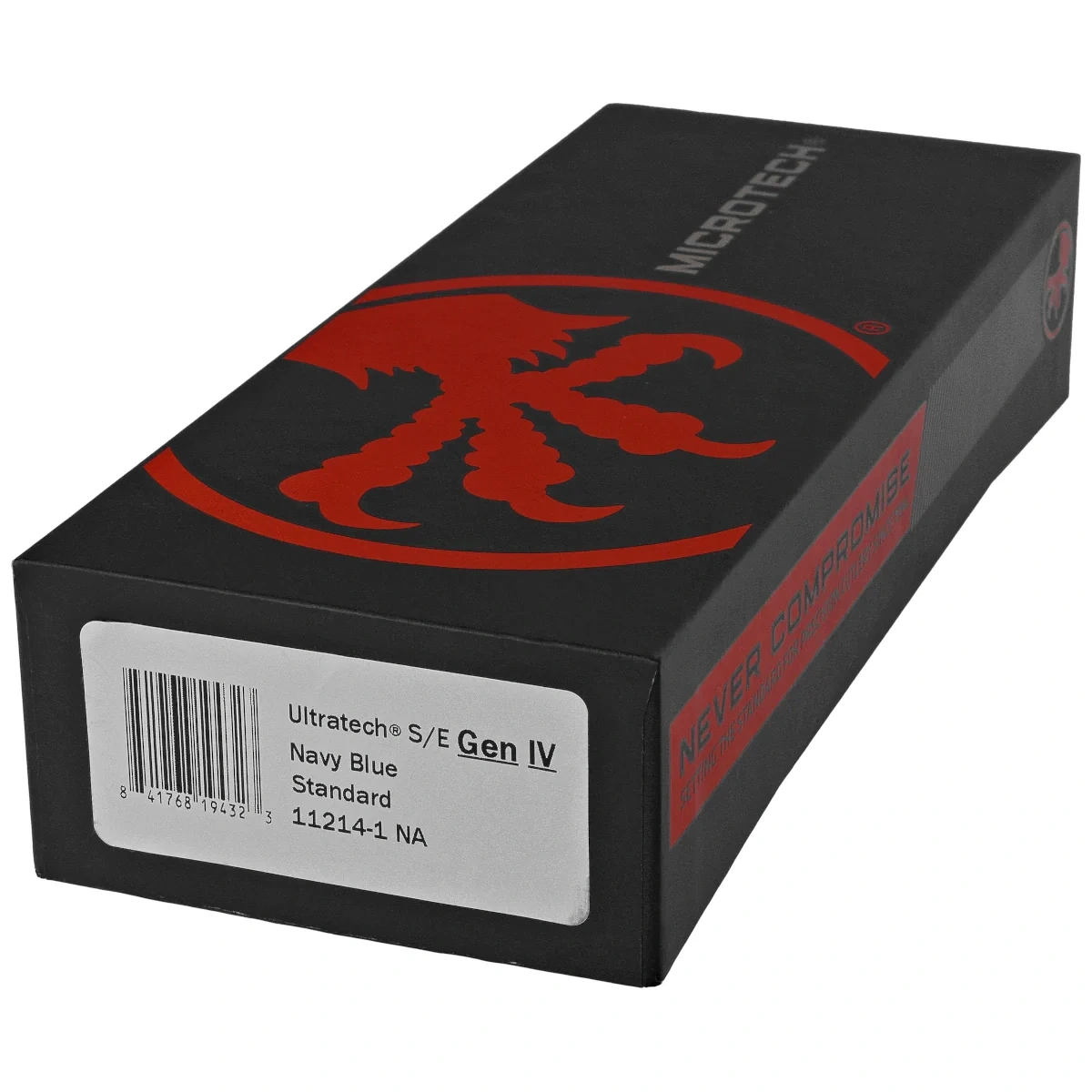 Ultratech Gen IV S/E Navy Blue Aluminium, Black to pełnowymiarowy nóż automatyczny OTF (Out The Front) z serii Ultratech. Czwarta generacja wyróżnia się szeregiem usprawnień, takich jak; Crud Kutter™, Dual-Fuel Drive Train™. Przeprojektowano również rękojeść, wyposażając ją w rozwiązania znane z innych modeli. Pracujący w trybie D/A (Double Action), umożliwia błyskawiczne wysunięcie i schowanie ostrza za pomocą jednego ruchu kciuka. Projekt autorstwa Tony’ego Marfione, właściciela Microtech Knives, łączy w sobie nowoczesny design z najwyższą jakością wykonania.