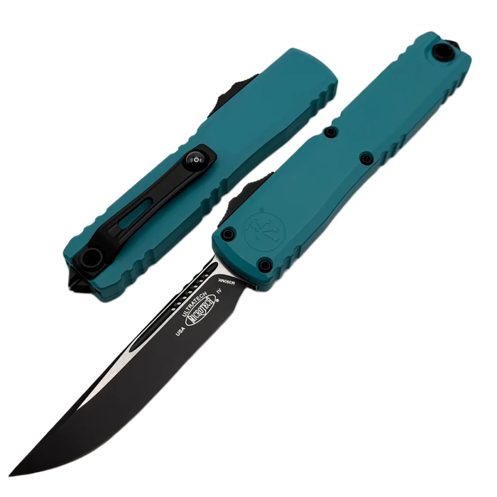 Ultratech Gen IV S/E Cerakote Cyan Aluminium, Black to pełnowymiarowy nóż automatyczny OTF (Out The Front) z serii Ultratech. Czwarta generacja wyróżnia się szeregiem usprawnień, takich jak; Crud Kutter™, Dual-Fuel Drive Train™. Przeprojektowano również rękojeść, wyposażając ją w rozwiązania znane z innych modeli. Pracujący w trybie D/A (Double Action), umożliwia błyskawiczne wysunięcie i schowanie ostrza za pomocą jednego ruchu kciuka. Projekt autorstwa Tony’ego Marfione, właściciela Microtech Knives, łączy w sobie nowoczesny design z najwyższą jakością wykonania.