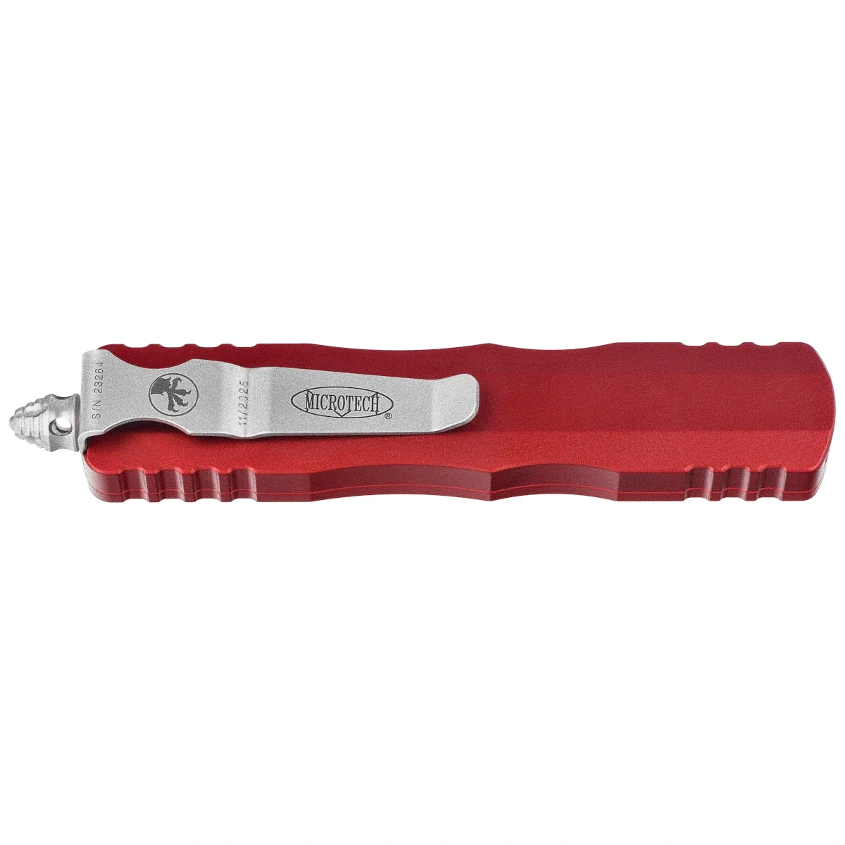 Rękojeść - wykonana z doskonałą precyzją w technologii 3D na frezarkach CNC, z pokrytego twardą powłoką Mil-Spec aluminium 6061-T6. Faktura powierzchni rękojeści powoduje, że nóż nie ślizga się w dłoni podczas używania. Na grzbiecie i dole rękojeści znajdują się nacięcia (jimping) dla pewniejszego chwytu. Charakterystyczne jest umiejscowienie suwaka slidera, w zagłębieniu wyfrezowanym na boku rękojeści. Dzięki temu ręka układa się naturalniej przy otwieraniu i zamykaniu noża. Smukły profil oraz frezowany dwupozycyjny (prawa/lewa) masywny klips typu deep carry, umożliwiają dyskretne przenoszenie noża w kieszeni, w pozycji tip-down (czubkiem ostrza do dołu). Na klipsie znajduje się logo Microtech, numer seryjny i data produkcji. Rękojeść zakończono zbijakiem do bicia szyb, masywny stalowy trójkąt, w który wprasowano kulkę z węglika wolframu.