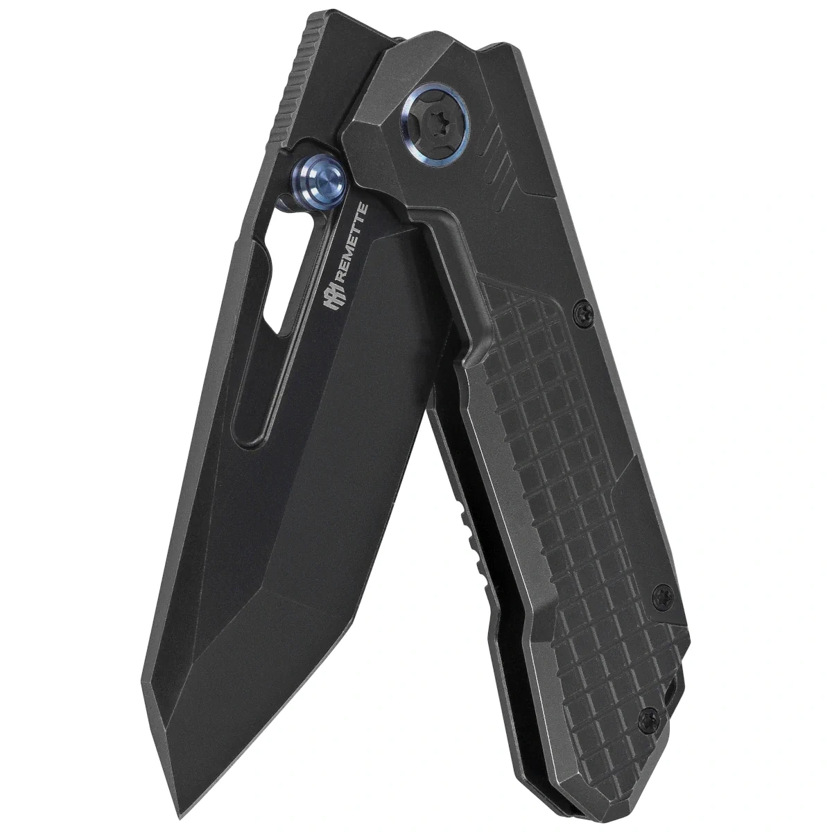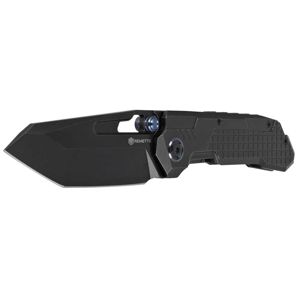 Głownia - o profilu reverse tanto została zaprojektowana z naciskiem na wzmocnienie strefy czubka oraz wysoką stabilność podczas pracy pod obciążeniem. Zastosowany szlif płaski zapewnia równomierne rozłożenie oporów cięcia na całej długości krawędzi tnącej. Powierzchnia ostrza została wykończona metodą Plating Black Titanium + Stonewashed, podkreślającą techniczną estetykę noża. Mechanizm otwierania oparto na łożyskach kulkowych, co zapewnia płynną, stabilną pracę bez szarpnięć. Za blokadę odpowiada blokada Button Frame Lock, dodatkowo wsparta niezależnym zabezpieczeniem który unieruchamia element blokujący, zwiększając bezpieczeństwo podczas intensywnej pracy.