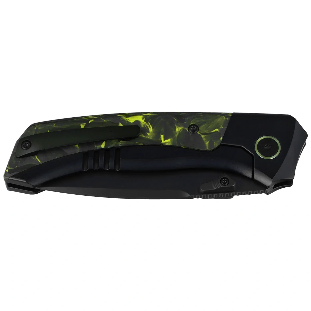 - RT-Steed Black Titanium/Black-Green Carbon Fiber, Black DLC to nowoczesny nóż składany EDC klasy premium, łączący dopracowaną mechanikę, zaawansowane materiały oraz elegancką, techniczną formę zaprojektowaną z myślą o świadomym użytkowaniu.