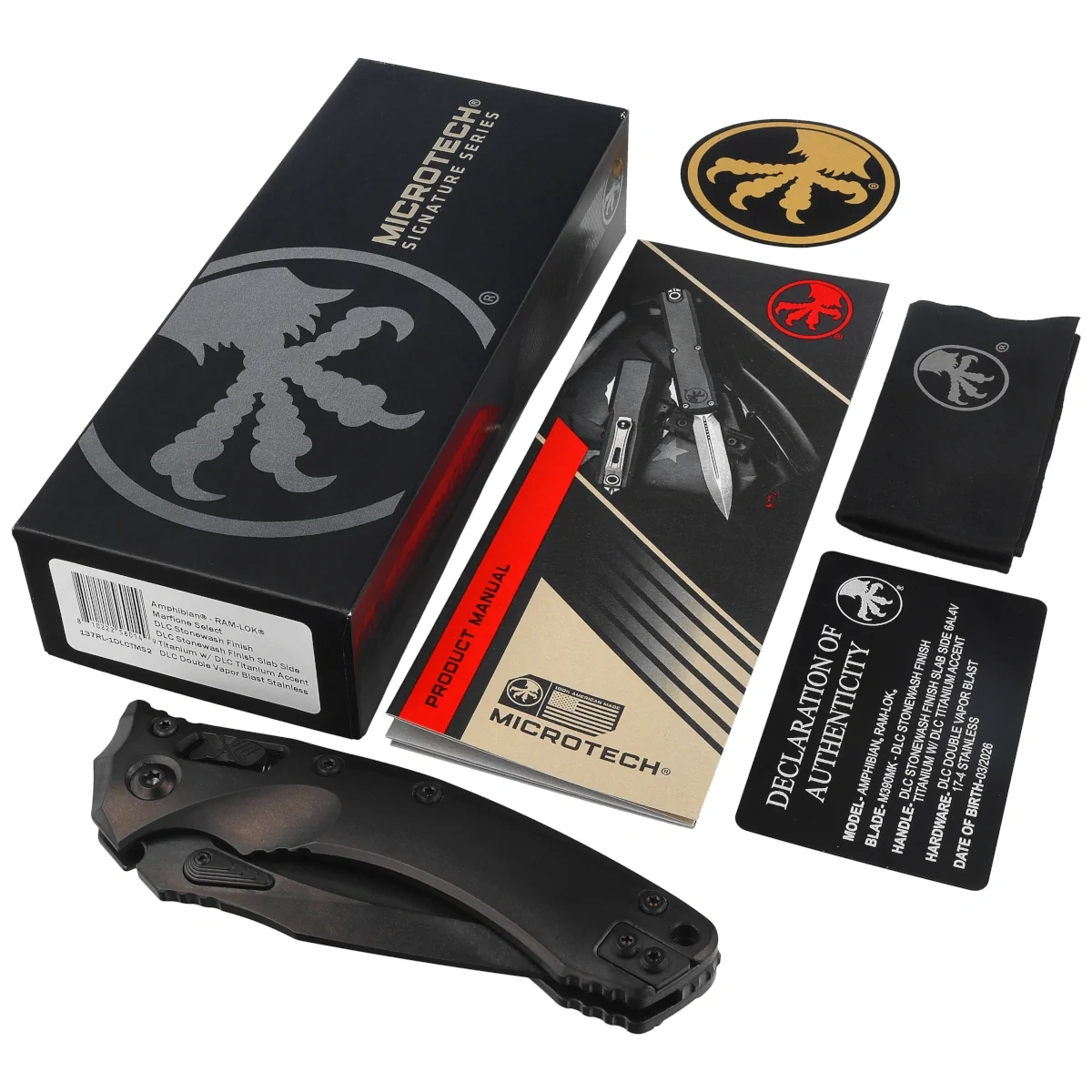Nóż składany Microtech Marfione Select Amphibian Ram-Lok S/E Black Titanium, Black DLC Stonewashed M390MK by Tony Marfione (137RL-1DLCTMS2)