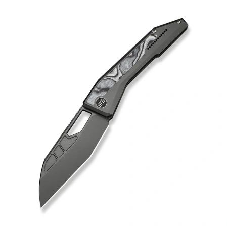 Rękojeść - precyzyjnie obrabiany tytan 6AL4V, które zapewnia wysoką sztywność, odporność na uszkodzenia mechaniczne oraz długotrwałą trwałość w intensywnym użytkowaniu. Zastosowane fazowania i wyraźne linie konstrukcyjne nadają całości nowoczesny, techniczny charakter oraz poprawiają ergonomię chwytu. Istotnym elementem jest wstawka z kompozytu G10, która kontrastuje z tytanową bazą i jednocześnie zwiększa przyczepność dłoni. Takie połączenie materiałów zapewnia bardzo dobrą kontrolę nad narzędziem bez rezygnacji z estetyki premium. Profil rękojeści został zaprojektowany z naciskiem na stabilność i precyzję pracy. Subtelne podcięcia oraz odpowiednio ukształtowana tylna część wspierają naturalne ułożenie dłoni, co przekłada się na komfort podczas dłuższego użytkowania. Całość uzupełnia tytanowy clip, umożliwiający wygodne przenoszenie w kieszeni, oraz dopracowane detale konstrukcyjne charakterystyczne dla marki WE Knife. Efektem jest rękojeść łącząca ergonomię, trwałość i estetykę premium w spójnej, nowoczesnej formie.
